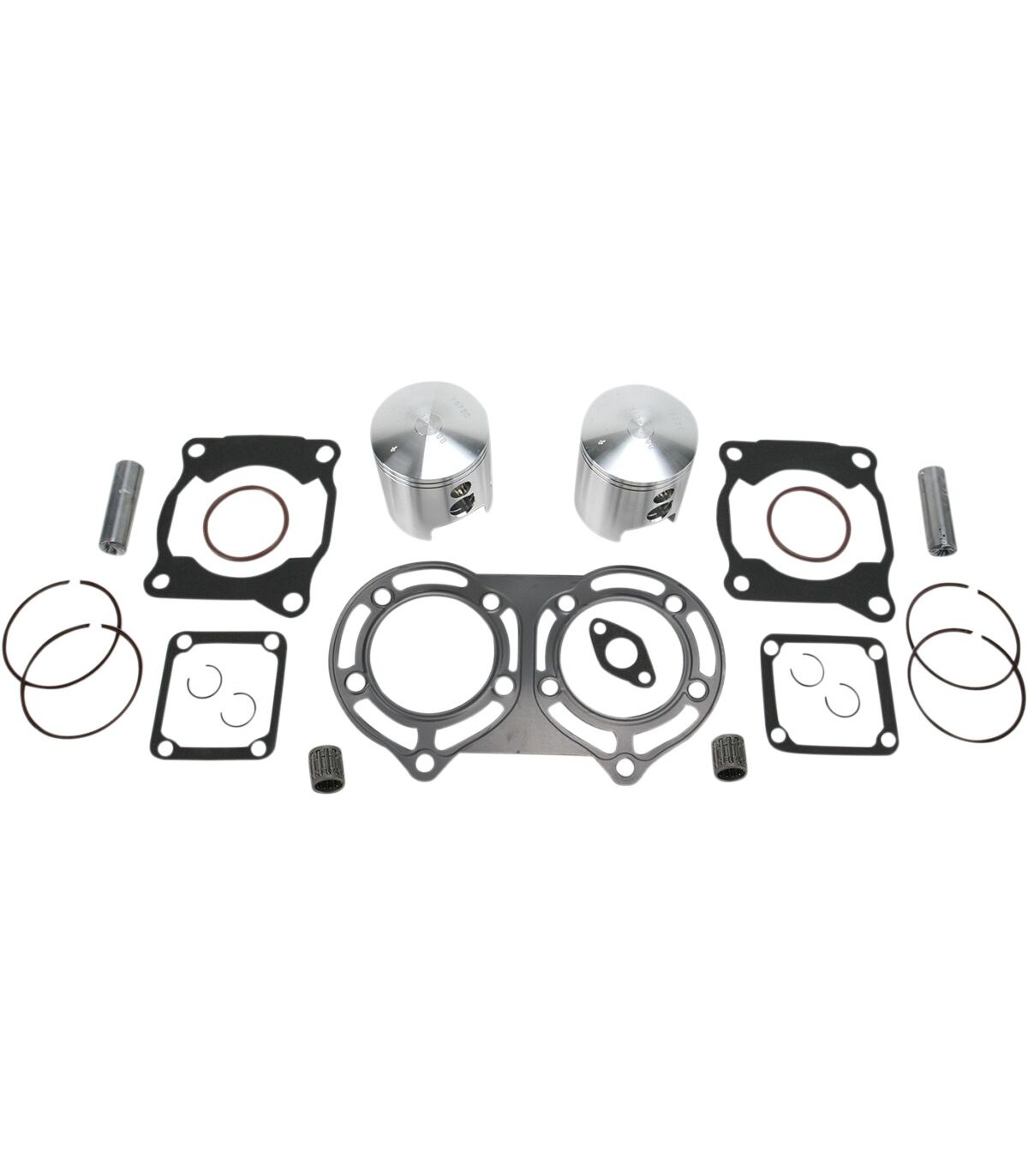High Performance Piston Kit with Gaskets for 2-StrokeComplete piston kit includes pistons, rings, wrist pins, circlips and top-end gasket kit for one complete engineWiseco pistons can be fitted only with Wiseco ringsWiseco ring types are not interchangeable (i.e., CD is not interchangeable with LC).Cylinder sleeves must be purchased separately.Kit Includes: