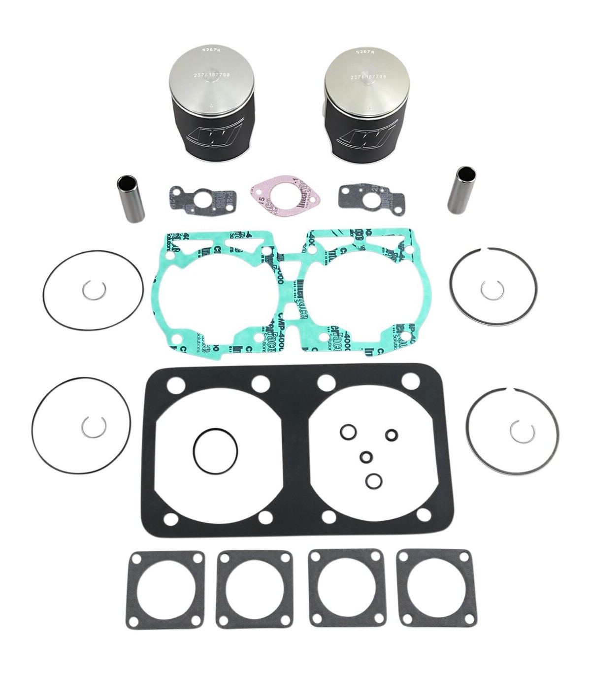 Piston Kit with GasketsAll the necessary components for overboring or rebuilding your top endKit includes forged pistons, rings, wrist pins, circlips and top end gasket setCylinder sleeves must be purchased separately.Fits cast iron bore cylinders.