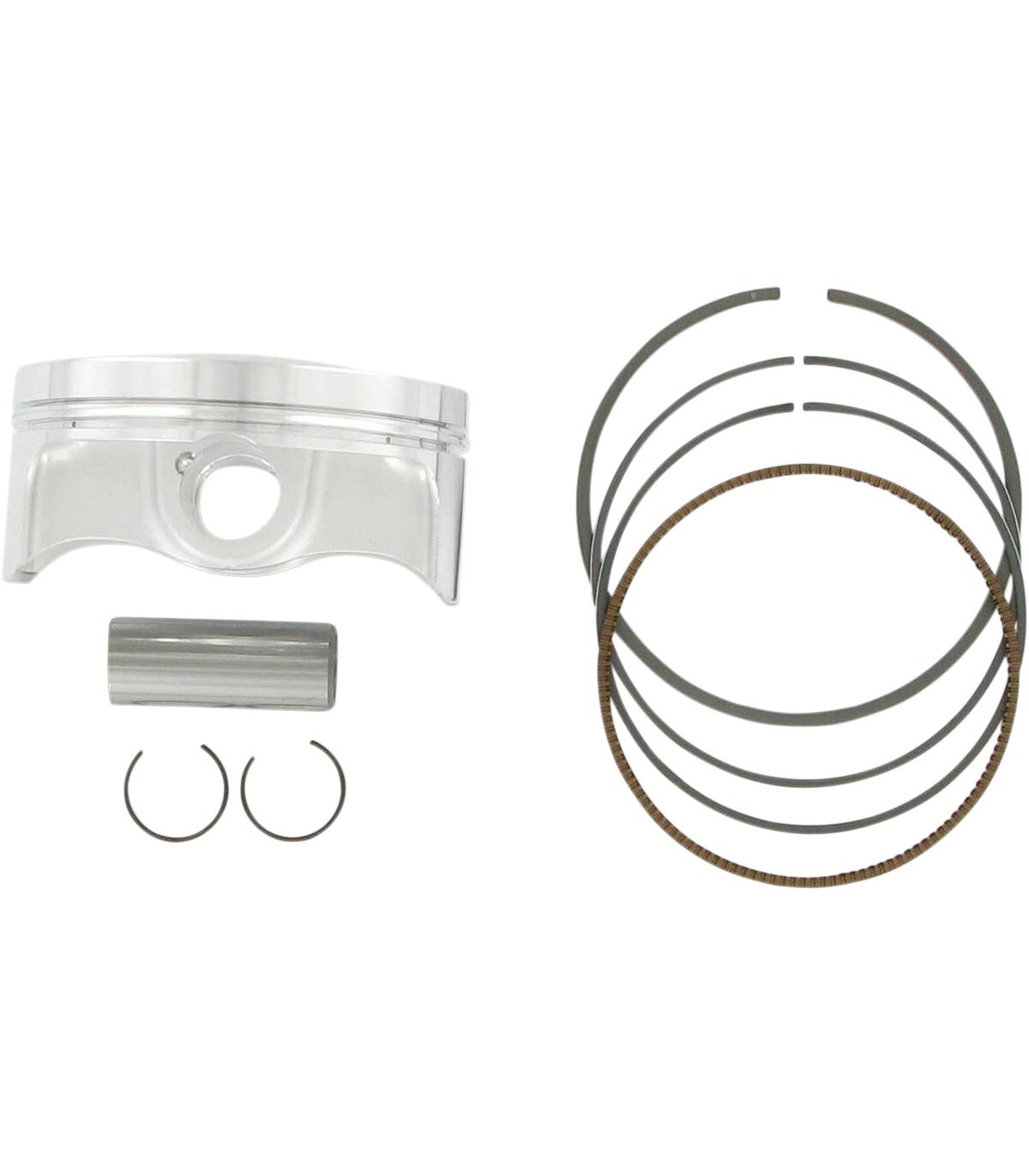 Piston Kit Forged Series for 4-StrokeForged 4-stroke piston is designed for each specific engine application and built to the tightest tolerances for the ultimate combination of performance and strengthDedicated forgings allow for optimized strength-to-weight ratioIdeal for multiple purpose ridingKit includes piston, wrist pin, rings and circlipsKit Includes: