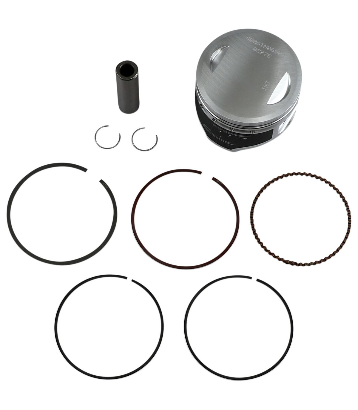 Piston Kit Forged Series for 4-StrokeForged 4-stroke piston is designed for each specific engine application and built to the tightest tolerances for the ultimate combination of performance and strengthDedicated forgings allow for optimized strength-to-weight ratioIdeal for multiple purpose ridingKit includes piston, wrist pin, rings and circlipsKit Includes: