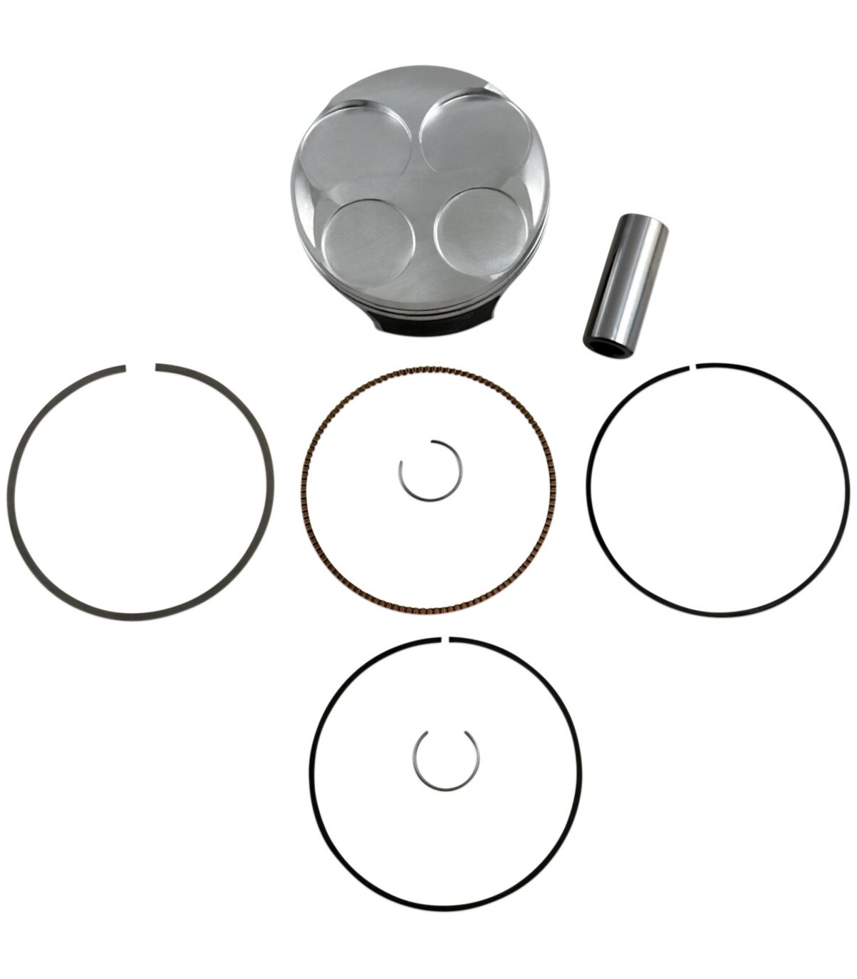 Piston Kit Forged Series for 4-StrokeForged 4-stroke piston is designed for each specific engine application and built to the tightest tolerances for the ultimate combination of performance and strengthDedicated forgings allow for optimized strength-to-weight ratioIdeal for multiple purpose ridingKit includes piston, wrist pin, rings and circlipsKit Includes: