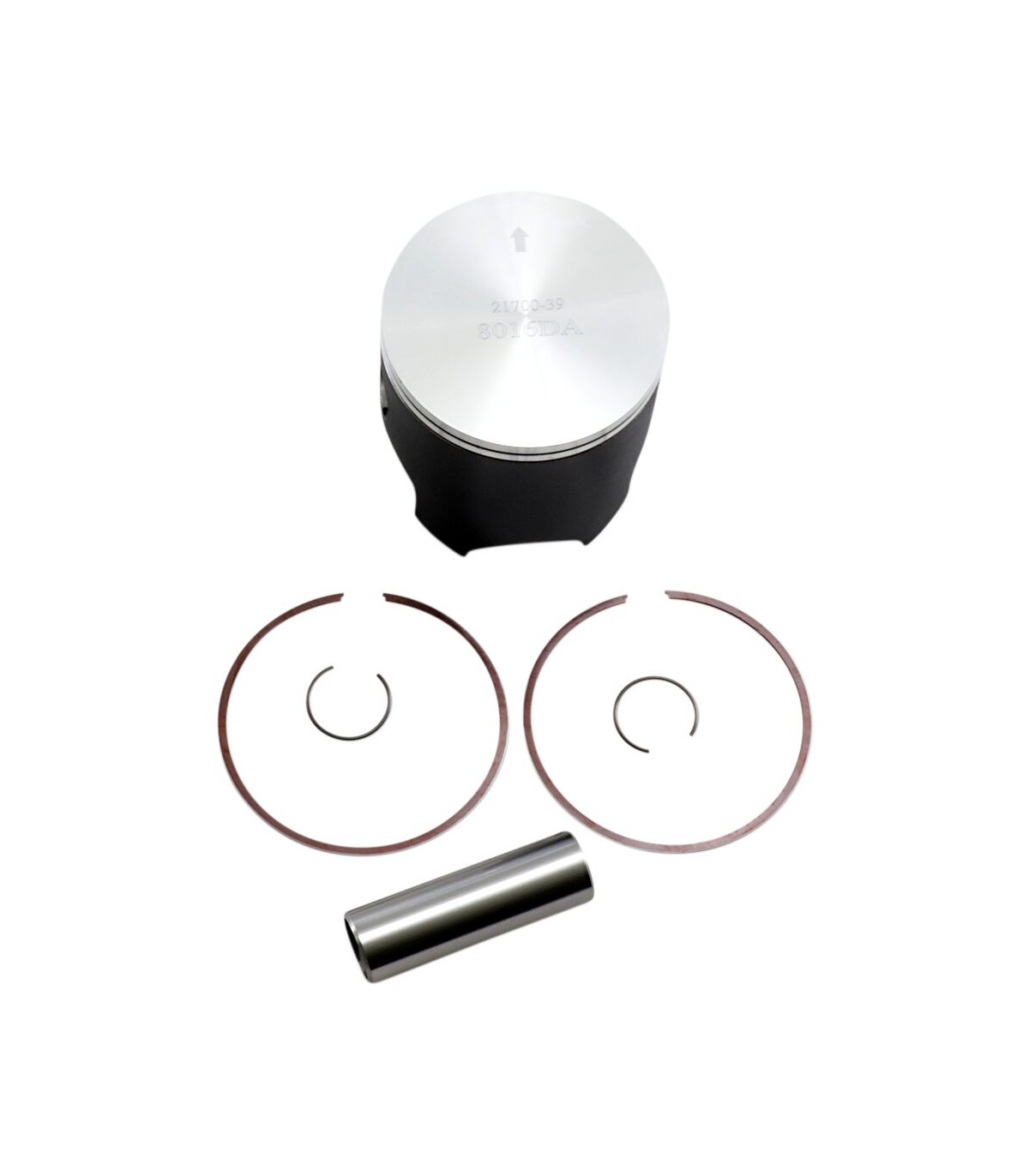 Kit de piston pour 2 tempsLes pistons disposent d’un revêtement permanent de haute qualité sur la jupe pour réduire la friction et le jeu de piston, pour des performances silencieuses et amélioréesLes kits de piston pour moteurs 2 temps comprennent un piston, des segments, un axe et des circlips.Kit Includes: