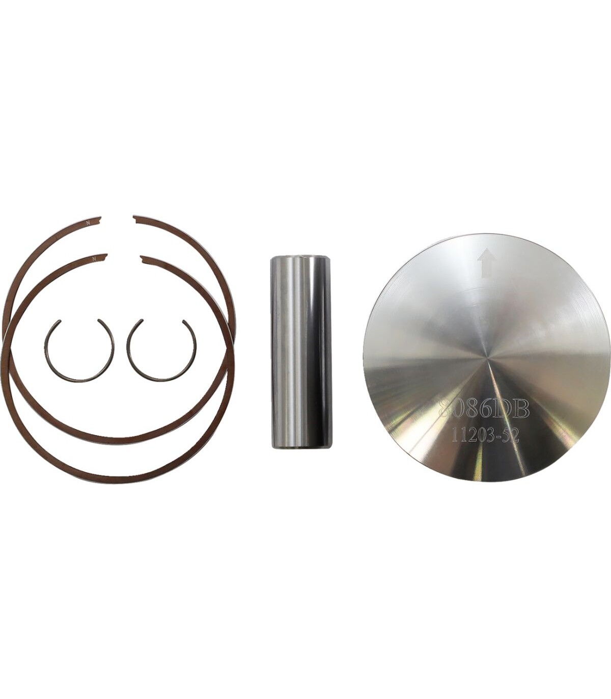 Kit de piston pour 2 tempsLes pistons disposent d’un revêtement permanent de haute qualité sur la jupe pour réduire la friction et le jeu de piston, pour des performances silencieuses et amélioréesLes kits de piston pour moteurs 2 temps comprennent un piston, des segments, un axe et des circlips.With intake window.