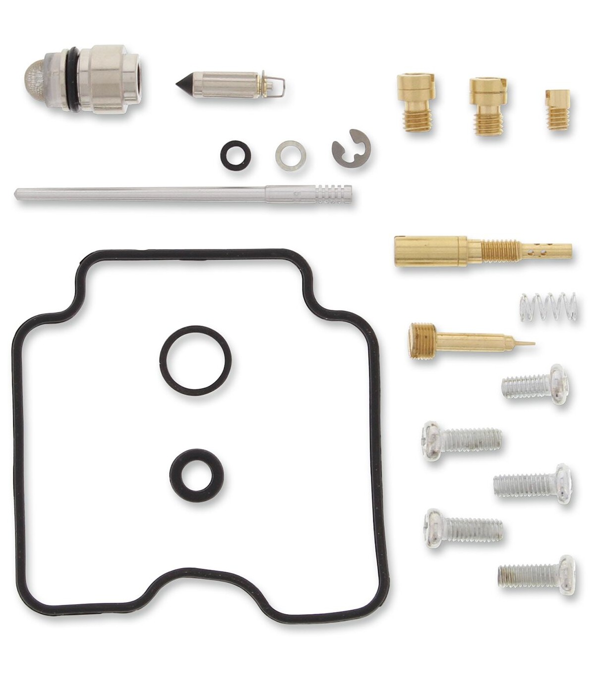 Kit de réparation pour carburateur SuzukiLes joints toriques et les joints en caoutchouc sont en caoutchouc nitrile (NBR) ; le NBR affiche une excellente résistance à l’éthanol utilisé dans les carburants actuels.Le kit inclut des joints toriques, des joints, des gicleurs, une aiguille, une vis de richesse, des vis pour cuve de flotteur, un pointeau et un siège de pointeau.Gicleurs de même taille que ceux d’origine inclus