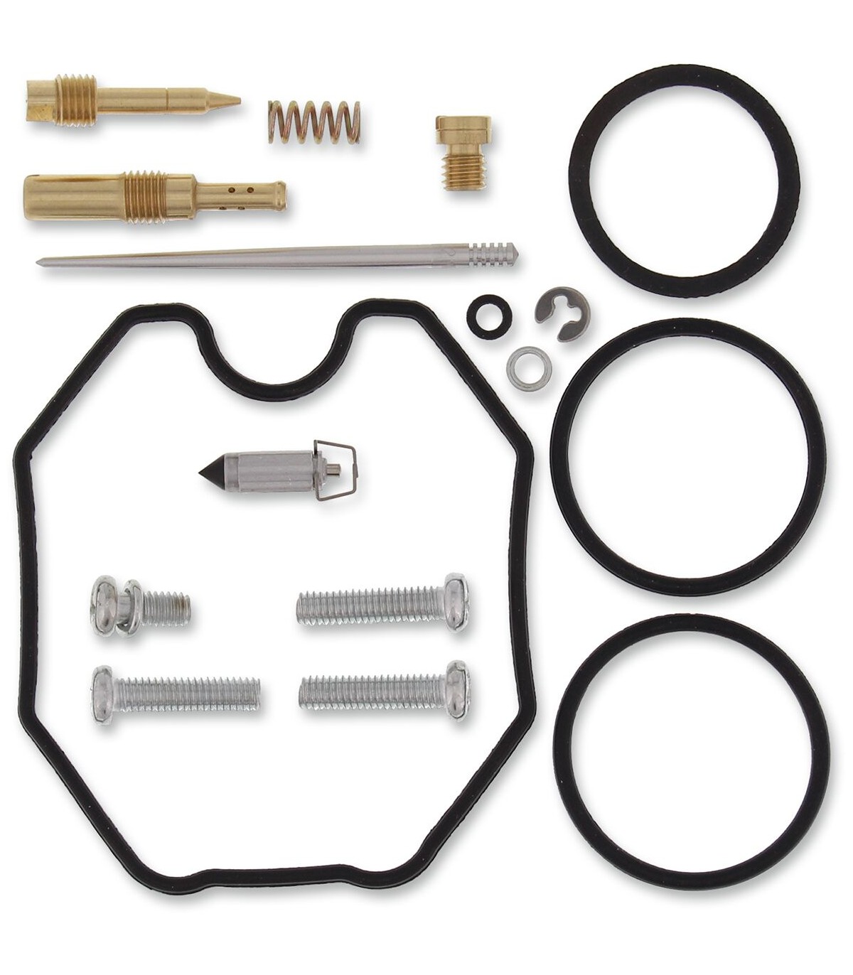 Kit de réparation pour carburateur PolarisLe kit inclut des joints toriques, des joints, des gicleurs, une aiguille, une vis de richesse, des vis pour cuve de flotteur, un pointeau et un siège de pointeau.Gicleurs de même taille que ceux d’origine inclus Les joints toriques et les joints en caoutchouc sont en caoutchouc nitrile (NBR) ; le NBR affiche une excellente résistance à l’éthanol utilisé dans les carburants actuels.