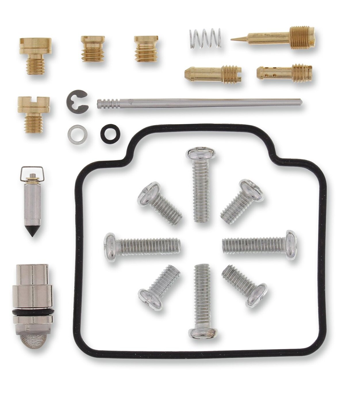 Kit de réparation pour carburateur PolarisLe kit inclut des joints toriques, des joints, des gicleurs, une aiguille, une vis de richesse, des vis pour cuve de flotteur, un pointeau et un siège de pointeau.Gicleurs de même taille que ceux d’origine inclus Les joints toriques et les joints en caoutchouc sont en caoutchouc nitrile (NBR) ; le NBR affiche une excellente résistance à l’éthanol utilisé dans les carburants actuels.