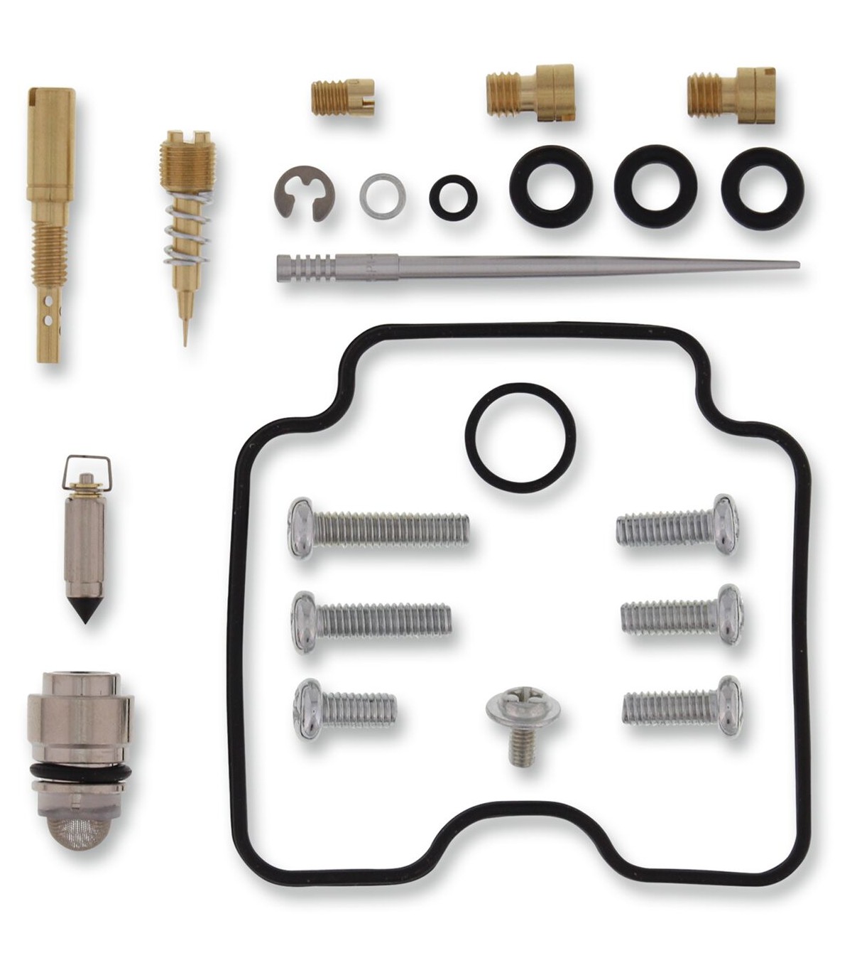 Kit de réparation pour carburateur YamahaLes joints toriques et les joints en caoutchouc sont en caoutchouc nitrile (NBR) ; le NBR affiche une excellente résistance à l’éthanol utilisé dans les carburants actuels.Le kit inclut des joints toriques, des joints, des gicleurs, une aiguille, une vis de richesse, des vis pour cuve de flotteur, un pointeau et un siège de pointeau.Gicleurs de même taille que ceux d’origine inclus