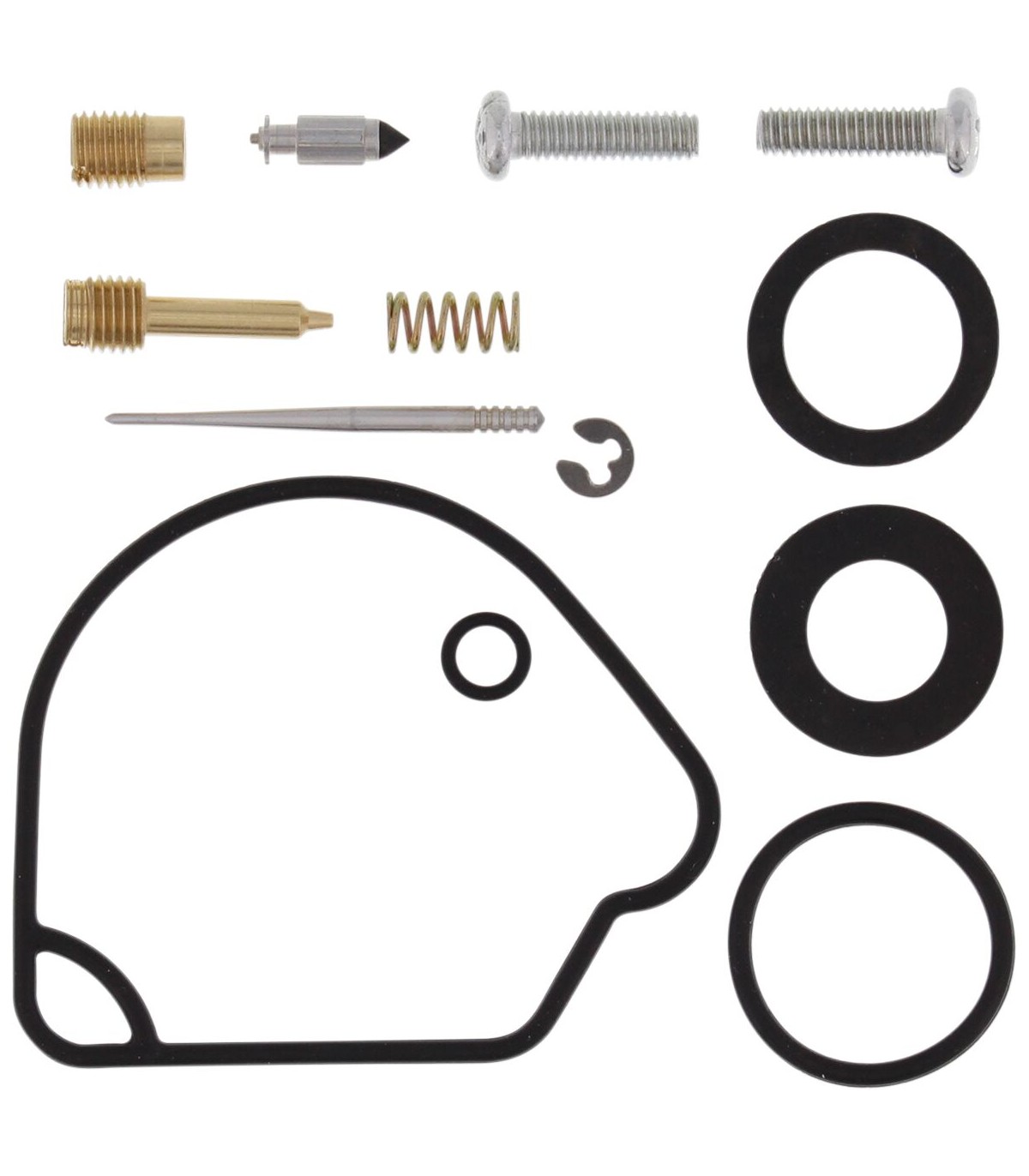 Kit de réparation pour carburateur HondaLes joints toriques et les joints en caoutchouc sont en caoutchouc nitrile (NBR) ; le NBR affiche une excellente résistance à l’éthanol utilisé dans les carburants actuels.Le kit inclut des joints toriques, des joints, des gicleurs, une aiguille, une vis de richesse, des vis pour cuve de flotteur, un pointeau et un siège de pointeau.Gicleurs de même taille que ceux d’origine inclus