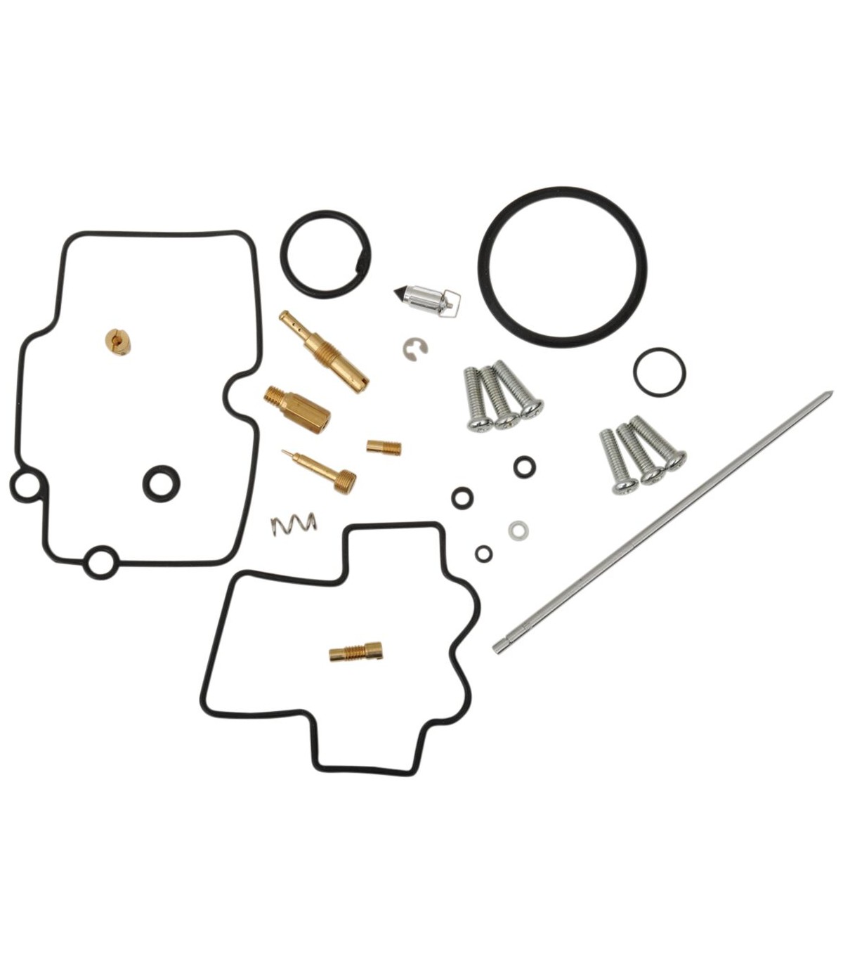 Kit de réparation pour carburateur YamahaLes joints toriques et les joints en caoutchouc sont en caoutchouc nitrile (NBR) ; le NBR affiche une excellente résistance à l’éthanol utilisé dans les carburants actuels.Le kit inclut des joints toriques, des joints, des gicleurs, une aiguille, une vis de richesse, des vis pour cuve de flotteur, un pointeau et un siège de pointeau.Gicleurs de même taille que ceux d’origine inclus