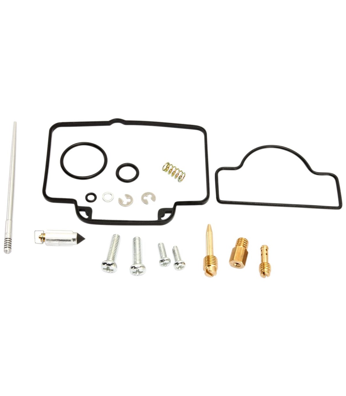 Kit de réparation pour carburateur YamahaLes joints toriques et les joints en caoutchouc sont en caoutchouc nitrile (NBR) ; le NBR affiche une excellente résistance à l’éthanol utilisé dans les carburants actuels.Le kit inclut des joints toriques, des joints, des gicleurs, une aiguille, une vis de richesse, des vis pour cuve de flotteur, un pointeau et un siège de pointeau.Gicleurs de même taille que ceux d’origine inclus