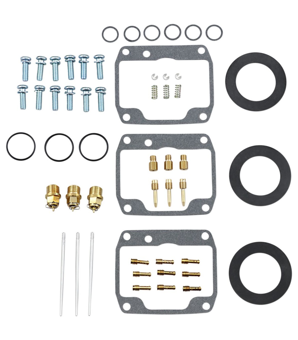 Carburetor Repair Kit - PolarisKit includes all necessary O-rings, gaskets, jets, needle, mixture screw, float bowl screws, float valve needle and seatNBR rubber material is used on all O-rings and rubber gaskets; NBR has excellent resistance to the ethanol used in today's fuelsApplications that use paper float bowl gaskets are upgraded to High Performance Interference Gasket materialOEM jet sizes and slide needles are included in the kit