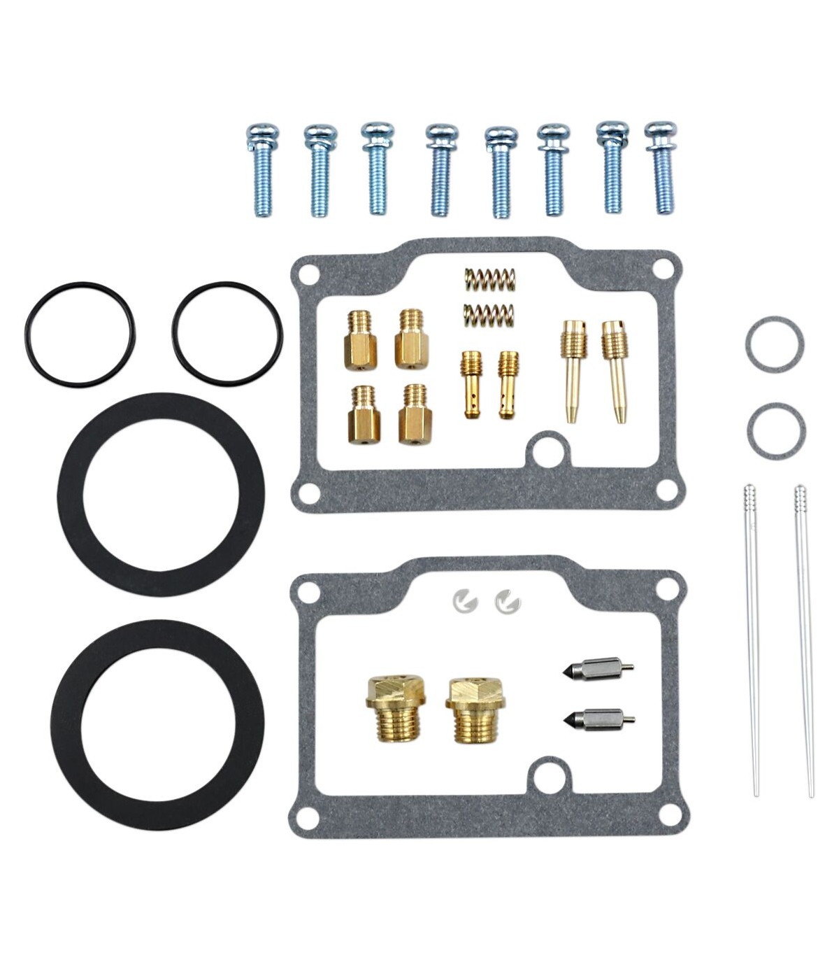 Carburetor Repair Kit - PolarisKit includes all necessary O-rings, gaskets, jets, needle, mixture screw, float bowl screws, float valve needle and seatNBR rubber material is used on all O-rings and rubber gaskets; NBR has excellent resistance to the ethanol used in today's fuelsApplications that use paper float bowl gaskets are upgraded to High Performance Interference Gasket materialOEM jet sizes and slide needles are included in the kit