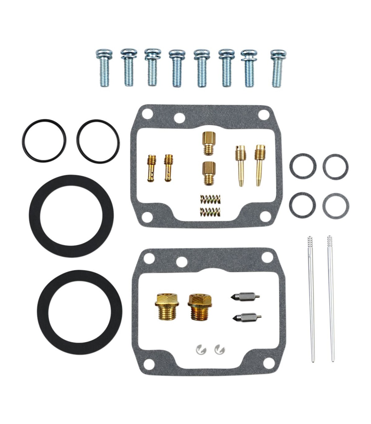 Carburetor Repair Kit - PolarisKit includes all necessary O-rings, gaskets, jets, needle, mixture screw, float bowl screws, float valve needle and seatNBR rubber material is used on all O-rings and rubber gaskets; NBR has excellent resistance to the ethanol used in today's fuelsApplications that use paper float bowl gaskets are upgraded to High Performance Interference Gasket materialOEM jet sizes and slide needles are included in the kit