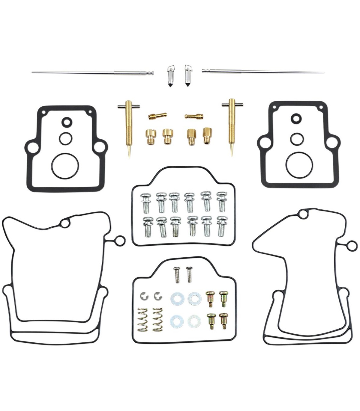 Carburetor Repair Kit - PolarisKit includes all necessary O-rings, gaskets, jets, needle, mixture screw, float bowl screws, float valve needle and seatNBR rubber material is used on all O-rings and rubber gaskets; NBR has excellent resistance to the ethanol used in today's fuelsApplications that use paper float bowl gaskets are upgraded to High Performance Interference Gasket materialOEM jet sizes and slide needles are included in the kit