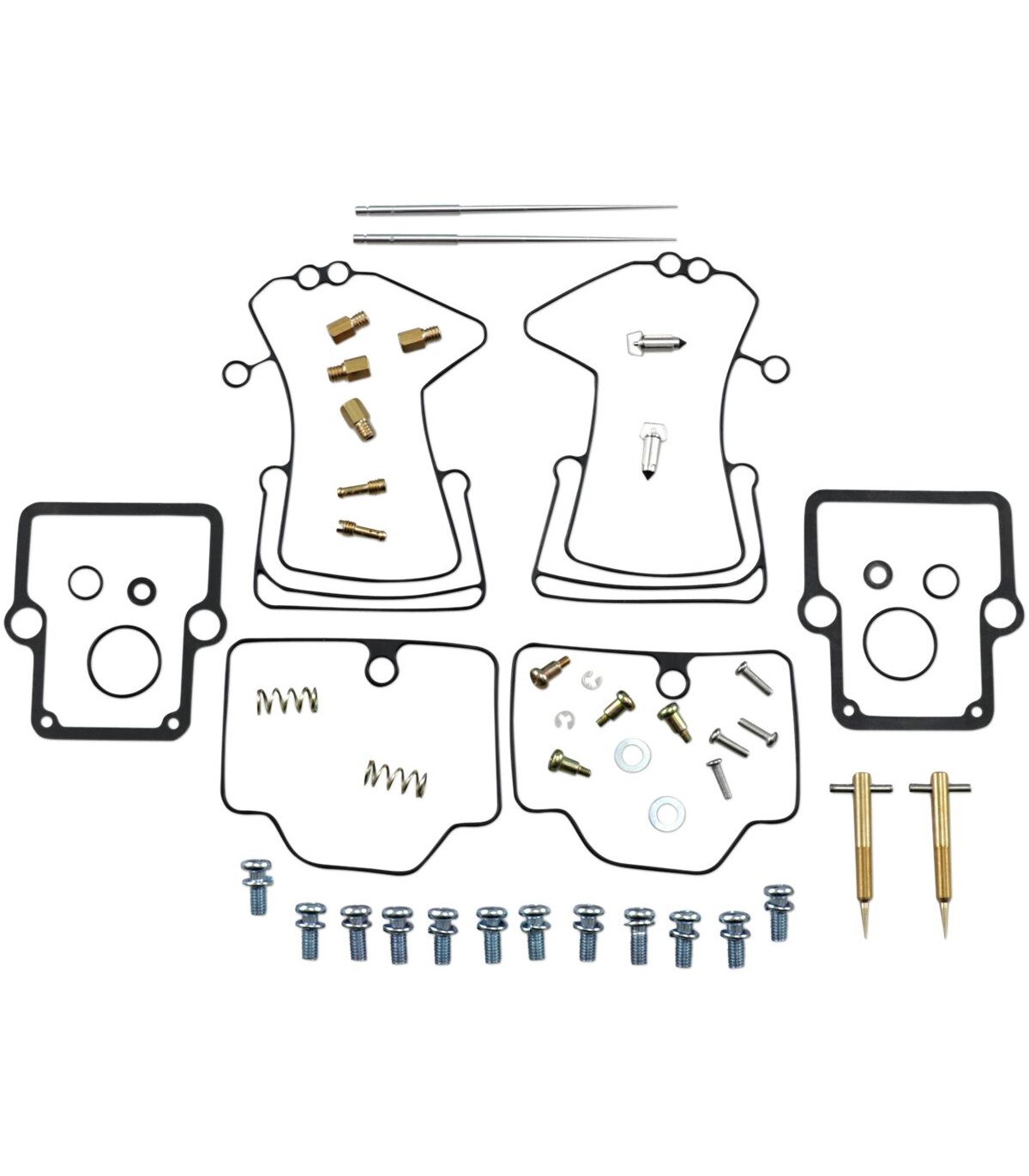 Carburetor Repair Kit - Ski-DooNBR rubber material is used on all O-rings and rubber gaskets; NBR has excellent resistance to the ethanol used in today's fuelsKit includes all necessary O-rings, gaskets, jets, needle, mixture screw, float bowl screws, float valve needle and seatApplications that use paper float bowl gaskets are upgraded to High Performance Interference Gasket materialOEM jet sizes and slide needles are included in the kit