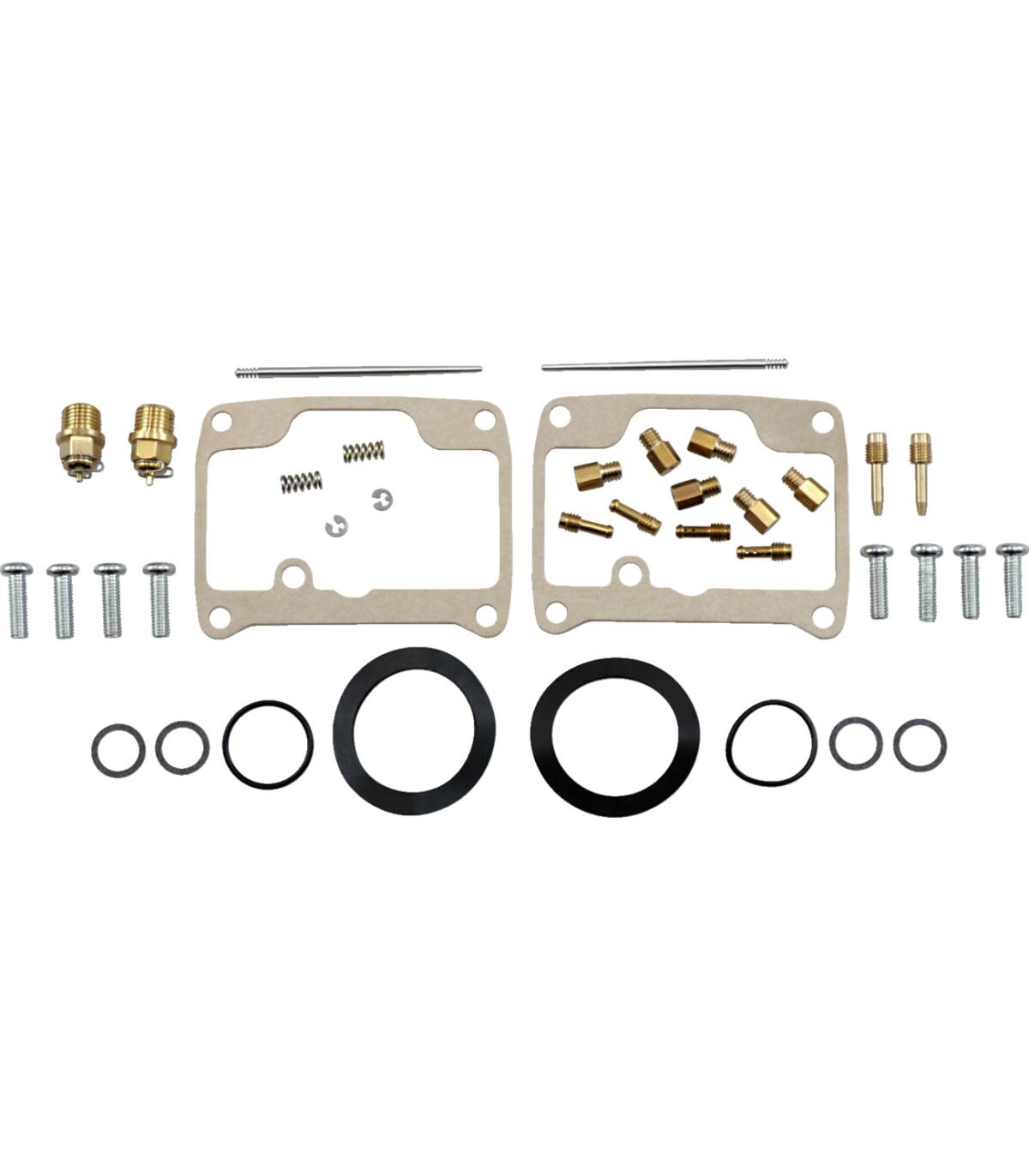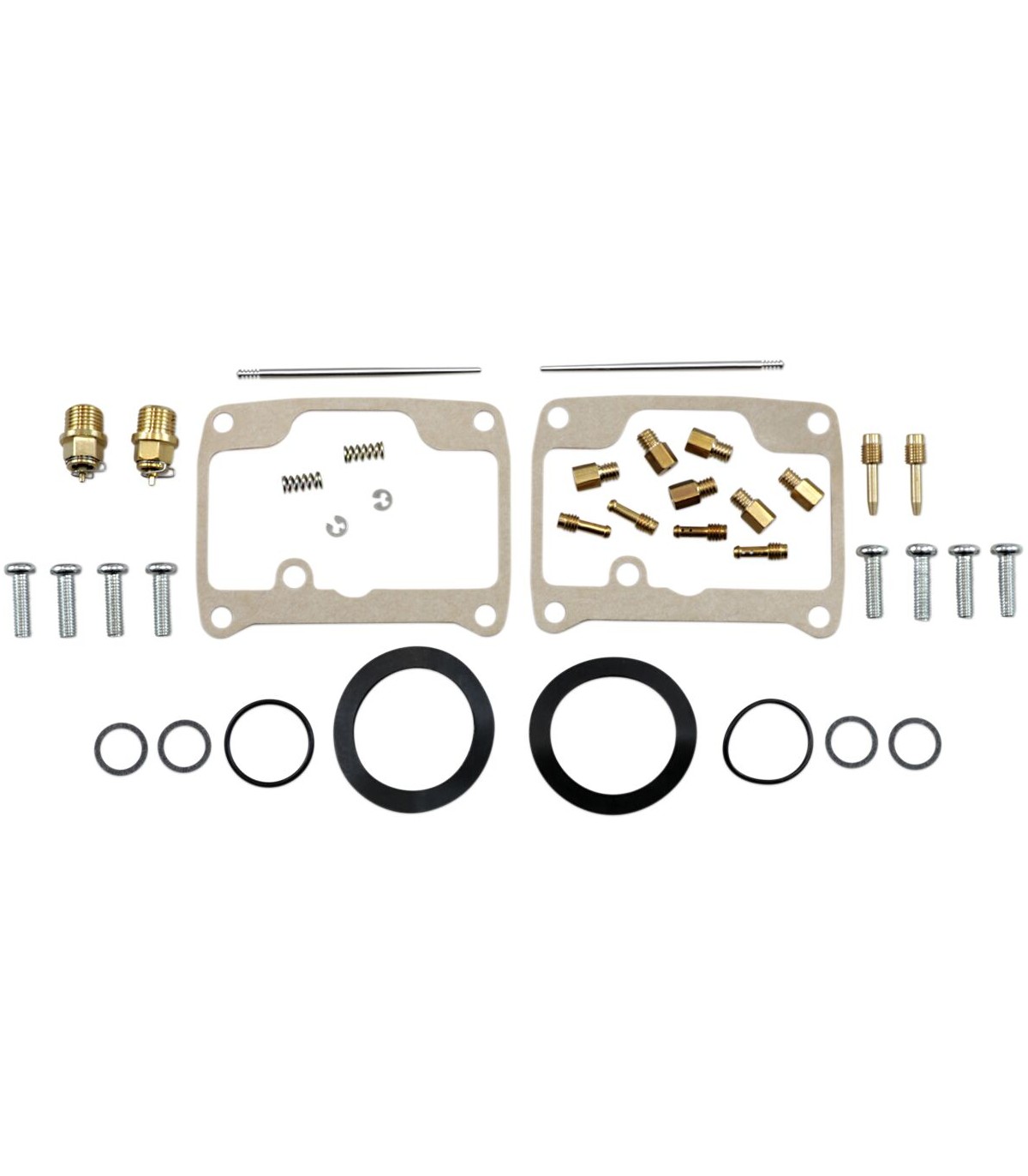 Carburetor Repair Kit - Ski-DooNBR rubber material is used on all O-rings and rubber gaskets; NBR has excellent resistance to the ethanol used in today's fuelsKit includes all necessary O-rings, gaskets, jets, needle, mixture screw, float bowl screws, float valve needle and seatApplications that use paper float bowl gaskets are upgraded to High Performance Interference Gasket materialOEM jet sizes and slide needles are included in the kit
