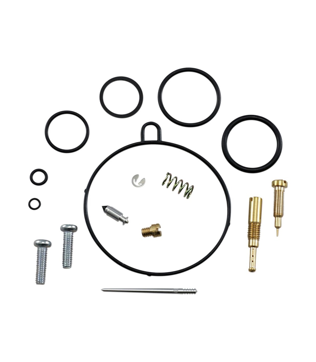 Kit de réparation pour carburateur HondaLes joints toriques et les joints en caoutchouc sont en caoutchouc nitrile (NBR) ; le NBR affiche une excellente résistance à l’éthanol utilisé dans les carburants actuels.Le kit inclut des joints toriques, des joints, des gicleurs, une aiguille, une vis de richesse, des vis pour cuve de flotteur, un pointeau et un siège de pointeau.Gicleurs de même taille que ceux d’origine inclus