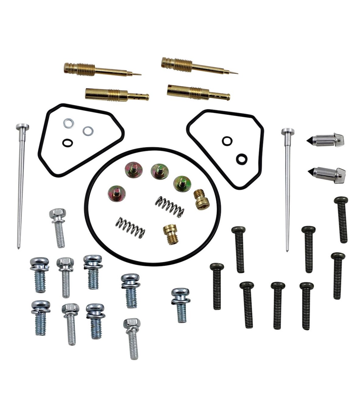 Kit de réparation pour carburateurLe kit comprend l’ensemble des joints toriques, joints, gicleurs, aiguille, vis de richesse, vis pour cuve du flotteur, pointeau et siège de pointeau (l’aiguille et les autres gicleurs ne sont pas compris dans le kit)Les joints toriques et les joints en caoutchouc sont en caoutchouc nitrile (NBR) ; le NBR affiche une excellente résistance à l’éthanol utilisé dans les carburants d’aujourd’huiLes applications avec une cuve de carburateur en papier ont été améliorées avec un matériau de joint Interface haute performanceLes gicleurs de taille OEM et les boisseaux sont inclus dans le kit