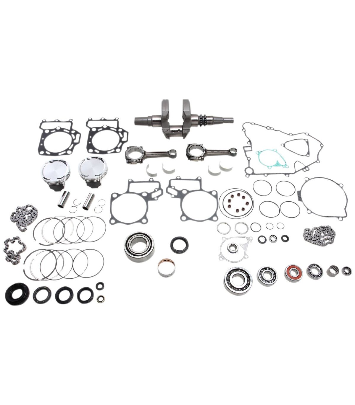 Kit de reconditionnement pour moteurKit de reconditionnement complet pour le moteurInclus : vilebrequin, kit de piston, kit de joint moteur complet avec joints spy, roulements de vilebrequin et joints, kit réparation de pompe à eau, roulements de transmission, bague de pignon/kit de joint, cage à aiguille d’axe de piston, chaîne de distKit Includes: