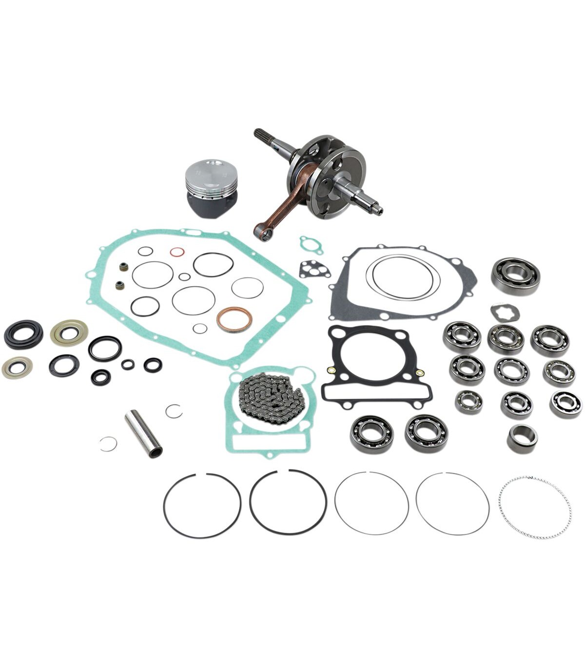 Kit de reconditionnement pour moteurKit de reconditionnement complet pour le moteurInclus : vilebrequin, kit de piston, kit de joint moteur complet avec joints spy, roulements de vilebrequin et joints, kit réparation de pompe à eau, roulements de transmission, bague de pignon/kit de joint, cage à aiguille d’axe de piston, chaîne de distLe kit contient un piston de 1 mm minimum.