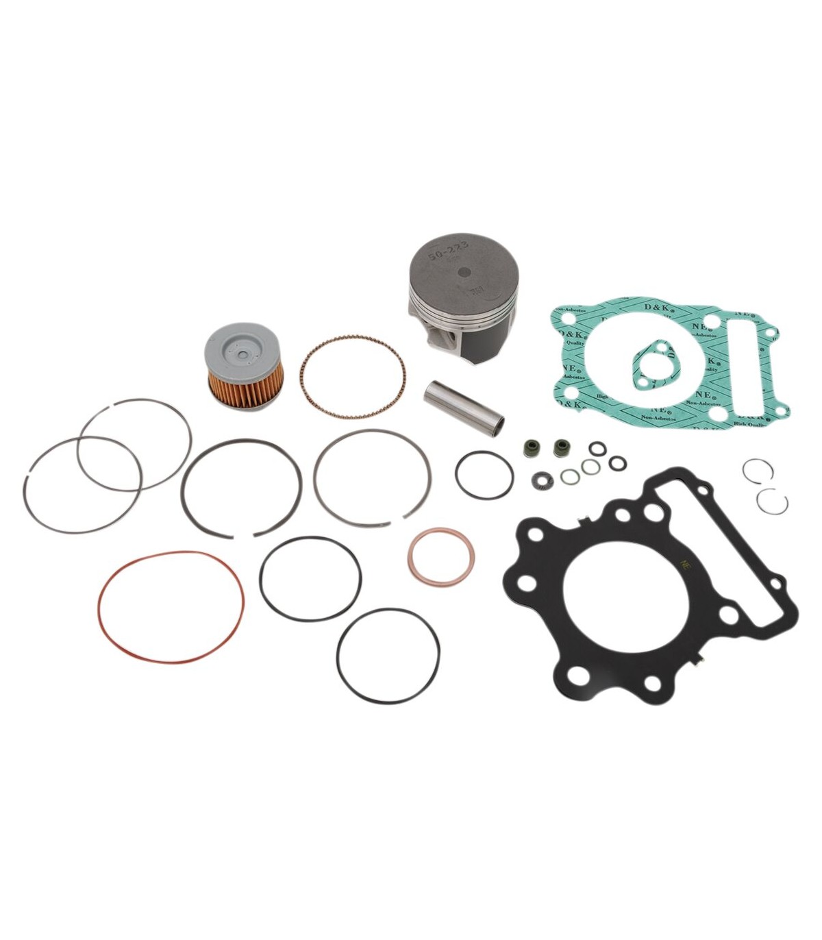 Kit de reconditionnement haut-moteurKits piston de qualité supérieureInclut des pistons, des segments, des circlips, des clips, des roulements à aiguilles, des joints de culasse et d’embase, des joints d’admission et d’échappement et un filtre à huile pour modèles à 4 temps
