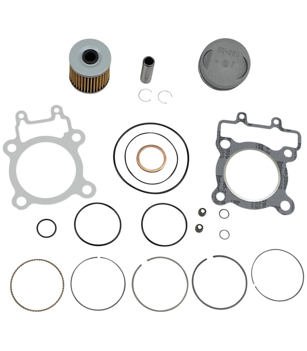 Kit de reconditionnement haut-moteurKits piston de qualité supérieureInclut des pistons, des segments, des circlips, des clips, des roulements à aiguilles, des joints de culasse et d’embase, des joints d’admission et d’échappement et un filtre à huile pour modèles à 4 temps