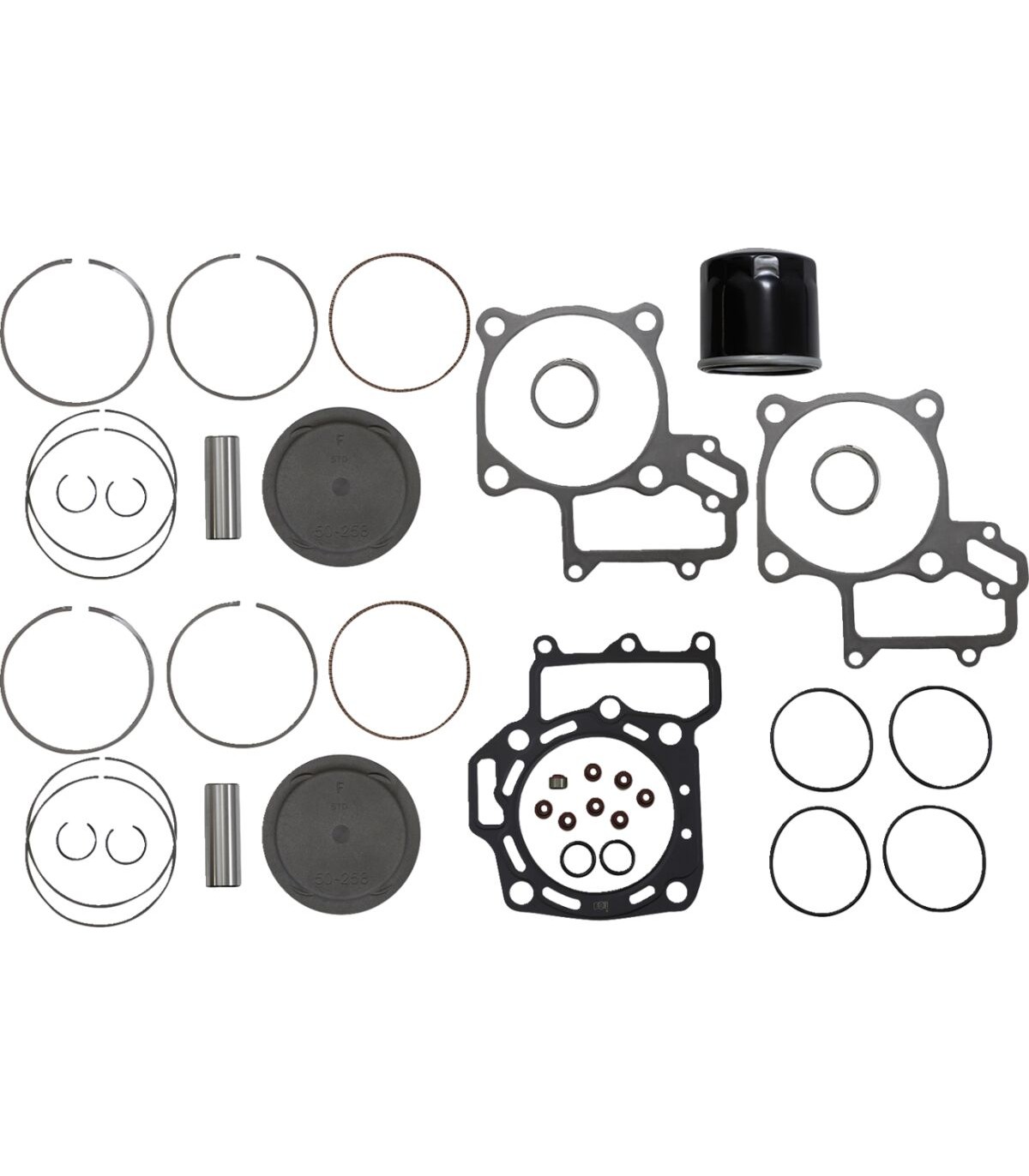 Kit de reconditionnement haut-moteurKits piston de qualité supérieureInclut des pistons, des segments, des circlips, des clips, des roulements à aiguilles, des joints de culasse et d’embase, des joints d’admission et d’échappement et un filtre à huile pour modèles à 4 temps