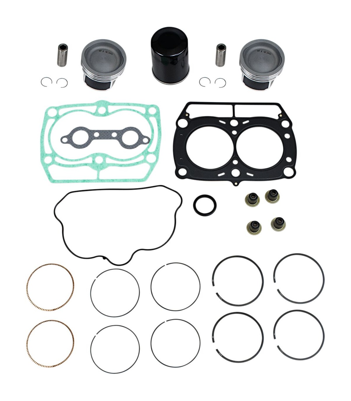 Kit de reconditionnement haut-moteurKits piston de qualité supérieureInclut des pistons, des segments, des circlips, des clips, des roulements à aiguilles, des joints de culasse et d’embase, des joints d’admission et d’échappement et un filtre à huile pour modèles à 4 temps
