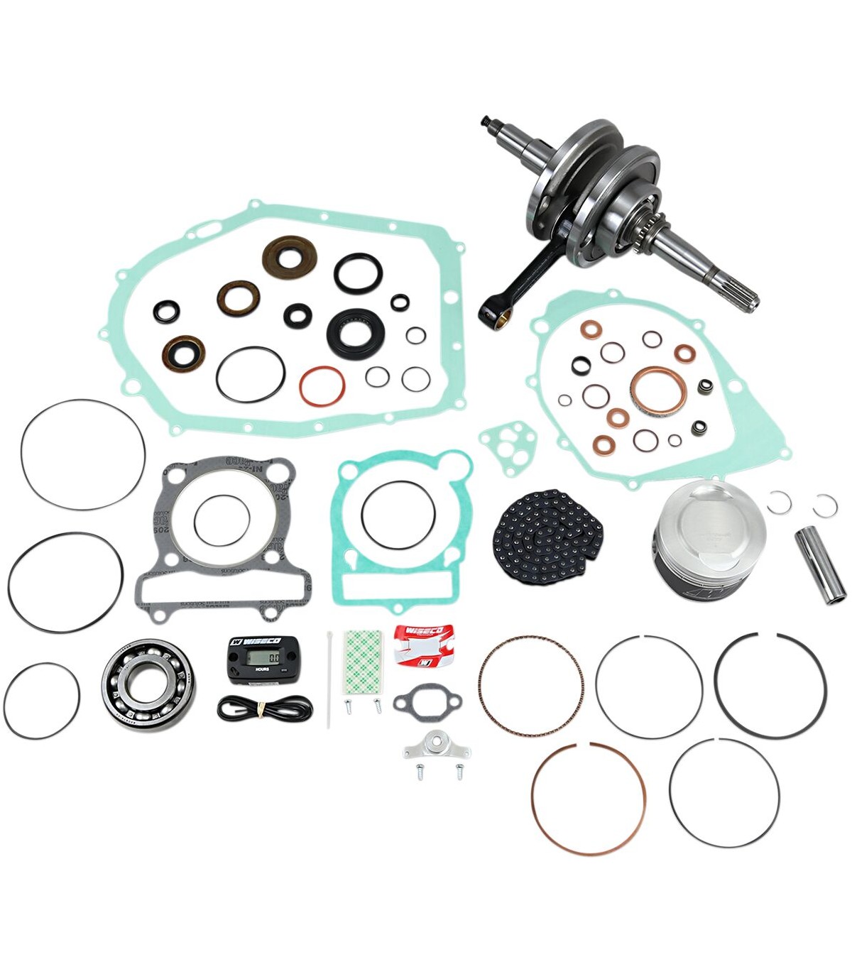 Engine Rebuild Kit - Garage Buddy - 4-StrokeKit includes a premium forged piston kit with stock compression ratio and a high-quality cam chainTop and bottom end components are included for a complete engine rebuildCrankshaft and rod assembly designed and inspected to assure durabilityMain bearings, seals, gaskets, a Wiseco hour meter and bracket are also included in the kitKit Includes: