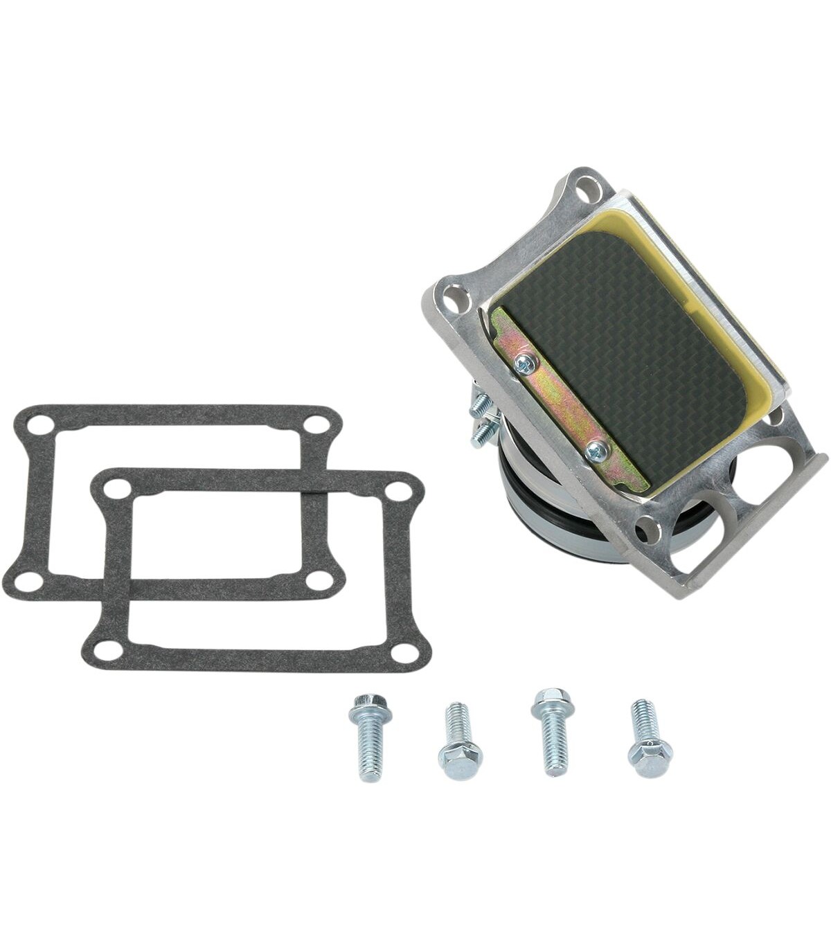 Boîte à clapetsMaintien de la vitesse de débit traversant la valve et redirection de la charge d'admission pour une distribution homogène des ports d'admissionFixation facile en aluminium couléRéponse à l'accélérateur plus rapide et plus précise et plus grande puissance sur toute la plage de régimesLa cage spécialement conçue maintient les lamelles de clapet brevetées à deux temps de BoyesenLes boîtes à clapets de Boyesen augmentent votre couple