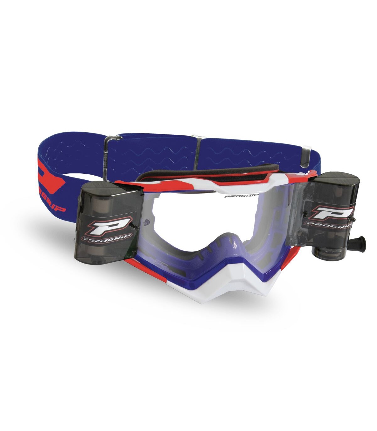3309 Rapid Goggles With Roll-Off SystemPro Grip 3309 Rapid mx goggles with roll-off system.Rubber logo on elastic band.Wide lens with tear-off pins.Anti-fogAnti scratch Anti UVPre-cut sponge and molded channels allow wearer to use own eye glasses.Removable nose protection.Triple silicone strip to secure grip on the helmet. One size fits any helmet.