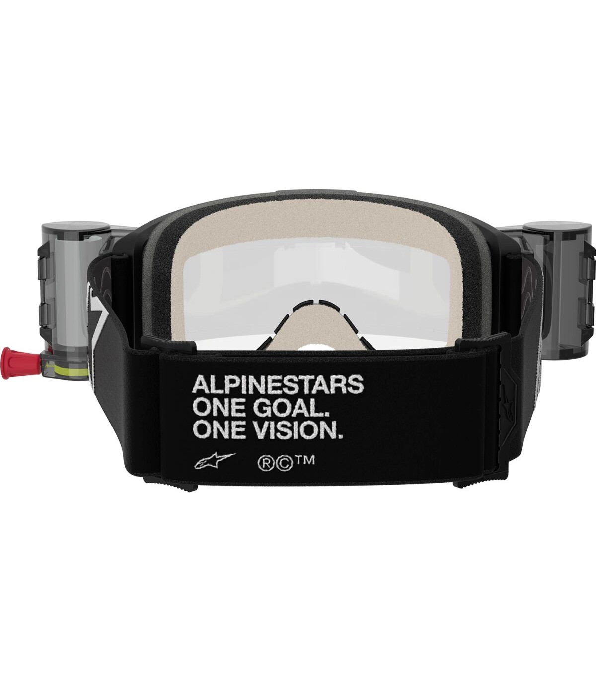 Vision 5 Corp Roll-Off GoggleThe Polycarbonate, anti-fog hard-coated lens provides 100% UVA protectionWide Vision Roll-Off kit including Roll-Off system, lens, two rolls of film, and mud visor includedA-FLEX urethane frame material with moisture channel constructionThe specially engineered RAM-AIR ventilation system promotes airflow and moisture releaseThe 100 PPI reticulated vent foam enhances ventilation17 mm thick, multi-layer foam creates a comfortable fit for nearly every face shapeAn ultra-wide field of view is designed to integrate seamlessly with Alpinestars WIDE-VISION Roll-Off system45 mm wide woven strap includes silicone traction control for a secure fitMicrofiber cloth cleaning and storage bag included