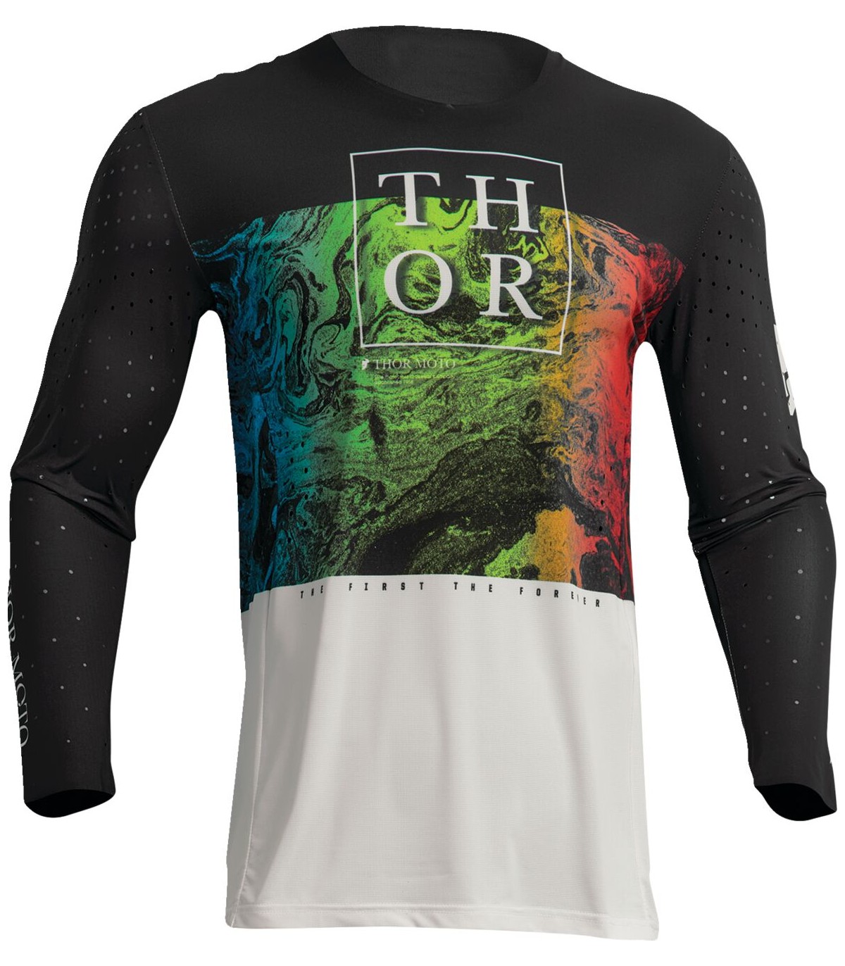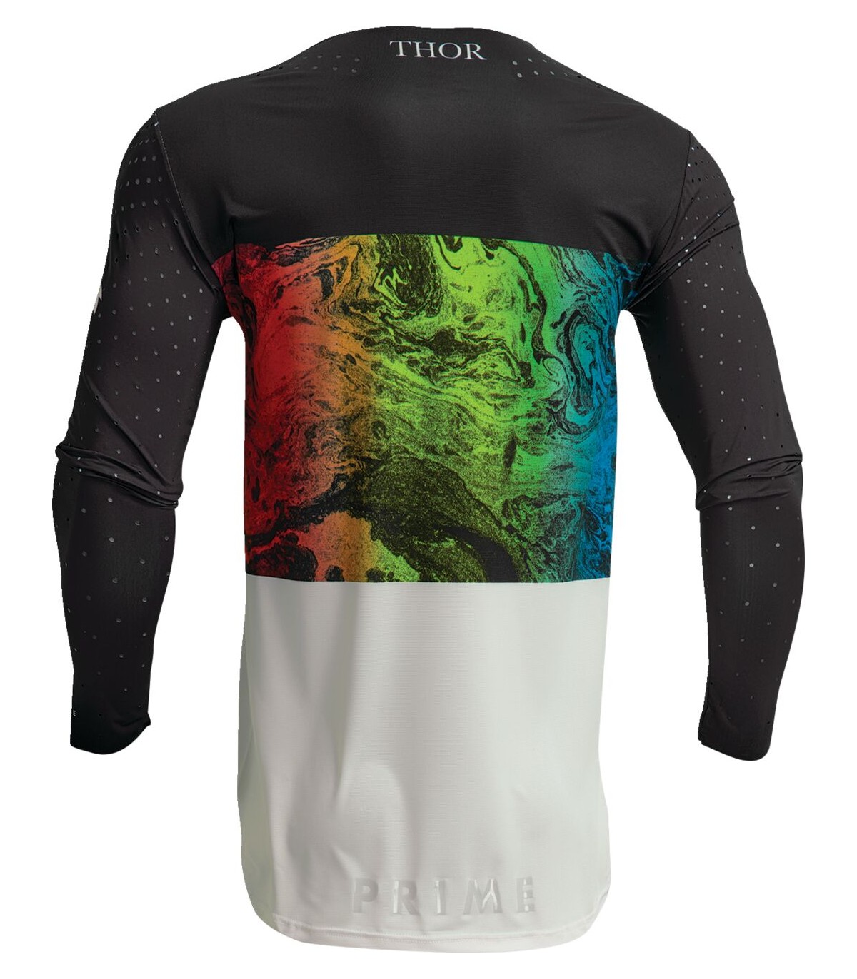 Maillot Prime MelterCoupe hybride avec manches montéesNombre de coutures moindre pour un confort maximalManches en polyester/élasthanne extensibles avec perforations laser pour un flux d’air amélioréCoutures scellées au col et aux poignetsTrous de ventilation découpés au laserTissu anti-humidité pour que le pilote reste au secBas du dos bordé de silicone pour un meilleur maintien dans le pantalonCoutures plates minimisant les risques d’irritation