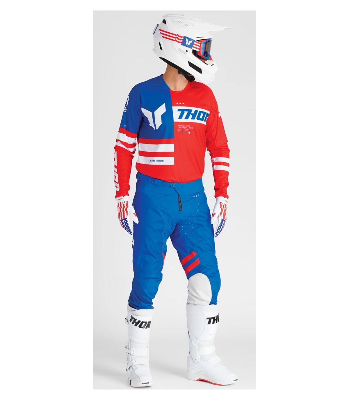 Maillot LAUNCHMODE PatriotChâssis en polyester/élasthanne extensible dans tous les sens offrant une mobilité sans limitesManches style raglanPanneaux en maille dans les zones sujettes à la transpiration pour améliorer le flux d’airMatière anti-humidité qui garde le pilote au frais et au sec