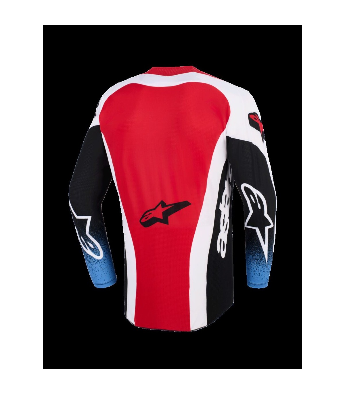 Techstar Knif JerseyTechstar Knif Jersey is constructed from lightweight, high durable, stretch fabric with a moisture-wicking treatment for comfort and performance.Ergonomically engineered cut and optimized racing multi-panel pattern for enhanced freedom of movement and mobility.Incorporated laser-cut perforations on chest and arms for ventilation.Strategically positioned stretch inserts for superior freedom of movement.Flat stretch construction on arms and shoulders for range of movement and rider comfort.Innovative construction utilizes no side seams and no underarm seams for comfort.Seamless bonded collar for ease of use and enhanced comfort and seamless bonded cuffs.Rear is extended for greater coverage in riding position and compatibility with Alpinestars' MX pants.