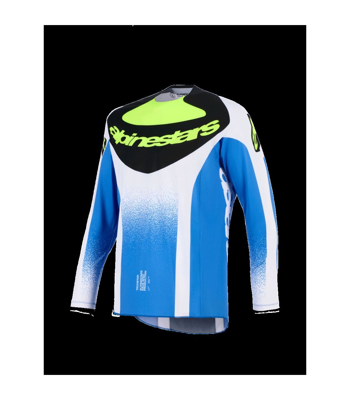 Techstar Knif JerseyTechstar Knif Jersey is constructed from lightweight, high durable, stretch fabric with a moisture-wicking treatment for comfort and performance.Ergonomically engineered cut and optimized racing multi-panel pattern for enhanced freedom of movement and mobility.Incorporated laser-cut perforations on chest and arms for ventilation.Strategically positioned stretch inserts for superior freedom of movement.Flat stretch construction on arms and shoulders for range of movement and rider comfort.Innovative construction utilizes no side seams and no underarm seams for comfort.Seamless bonded collar for ease of use and enhanced comfort and seamless bonded cuffs.Rear is extended for greater coverage in riding position and compatibility with Alpinestars' MX pants.