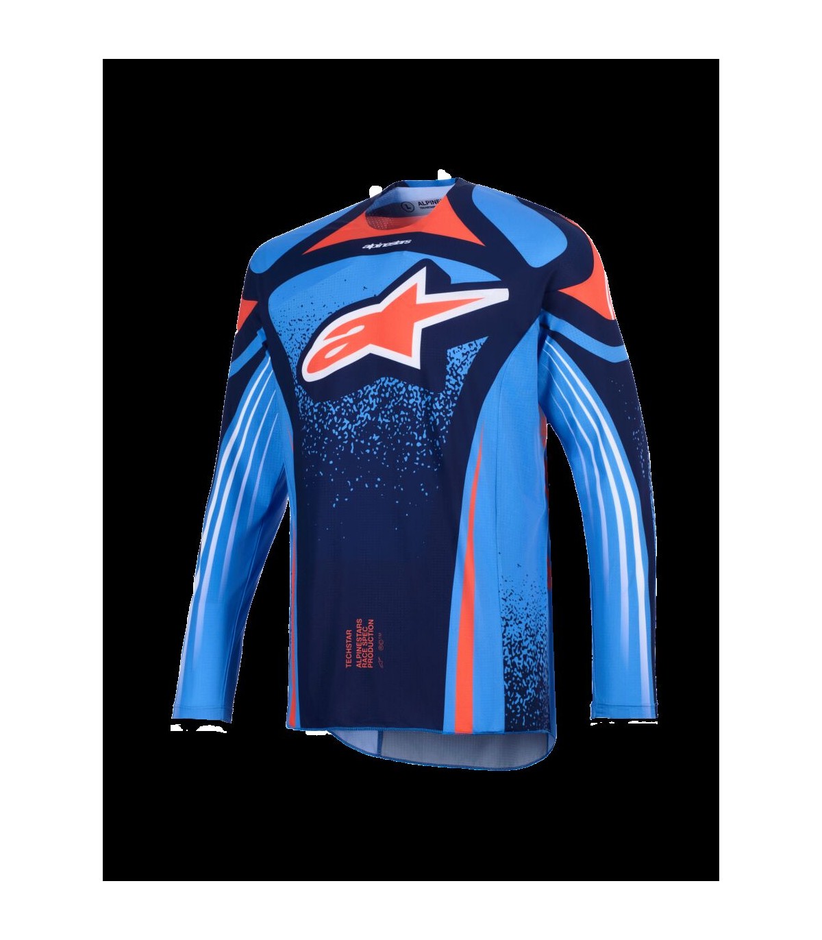 Techstar Nomur JerseyTechstar Nomur Jersey is constructed from lightweight, high durable, stretch fabric with a moisture-wicking treatment for comfort and performance.Ergonomically engineered cut and optimized racing multi-panel pattern for enhanced freedom of movement and mobility.Incorporated laser-cut perforations on chest and arms for ventilation.Strategically positioned stretch inserts for superior freedom of movement.Flat stretch construction on arms and shoulders for range of movement and rider comfort.Innovative construction utilizes no side seams and no underarm seams for comfort.Seamless bonded collar for ease of use and enhanced comfort and seamless bonded cuffs.Rear is extended for greater coverage in riding position and compatibility with Alpinestars' MX pants.