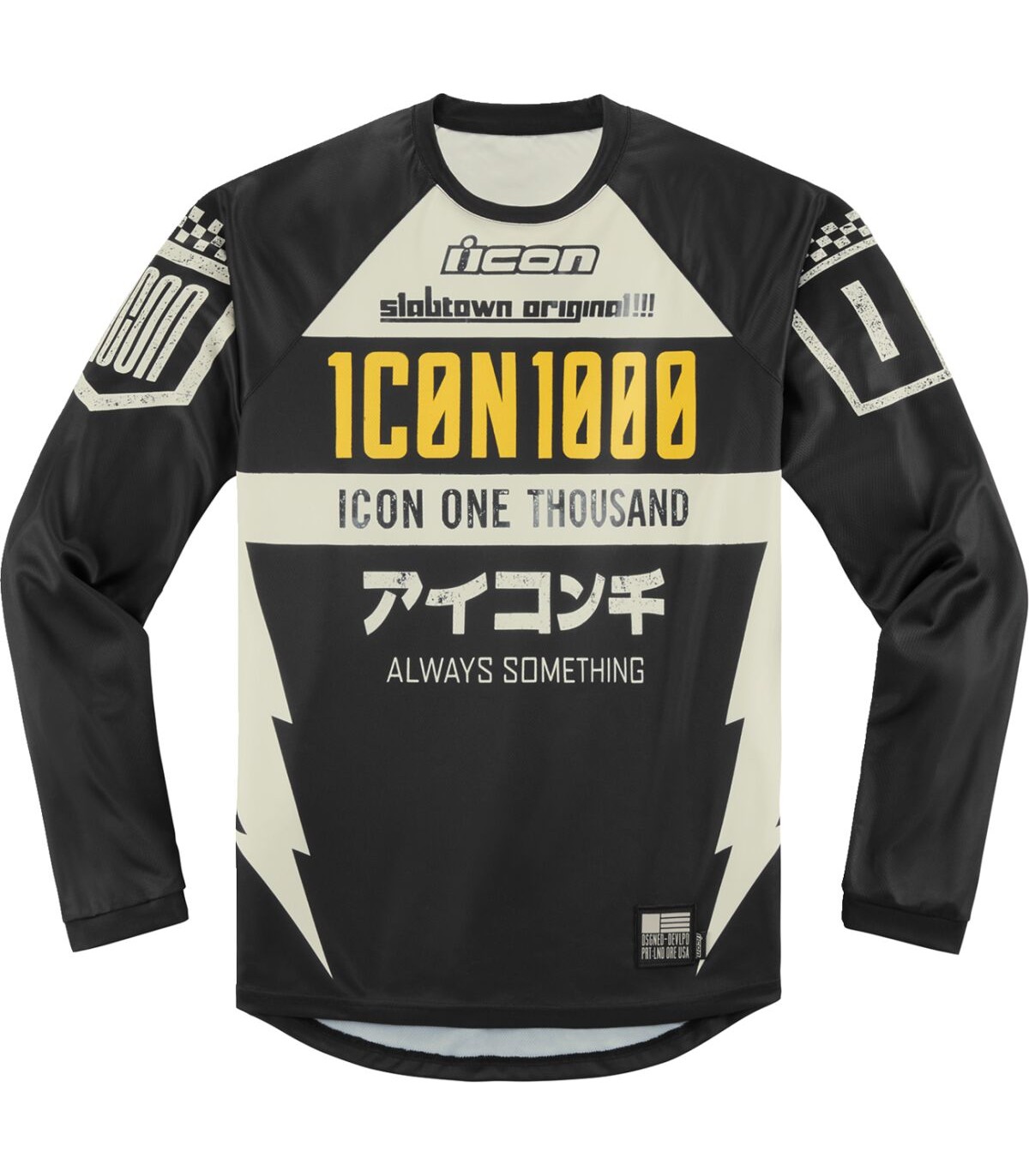 Maillot Slabtown™Chaque graphisme raconte une histoire, n’est-ce pas ?Dans le cas présent, cette histoire est représentée par un kanji, le chiffre 20, de grand taille utilisé pour indiquer une date anniversaire et par des mots aléatoires choisis de Kurt Walter (ICON).Grands graphismes sublimés qui attirent l’attention