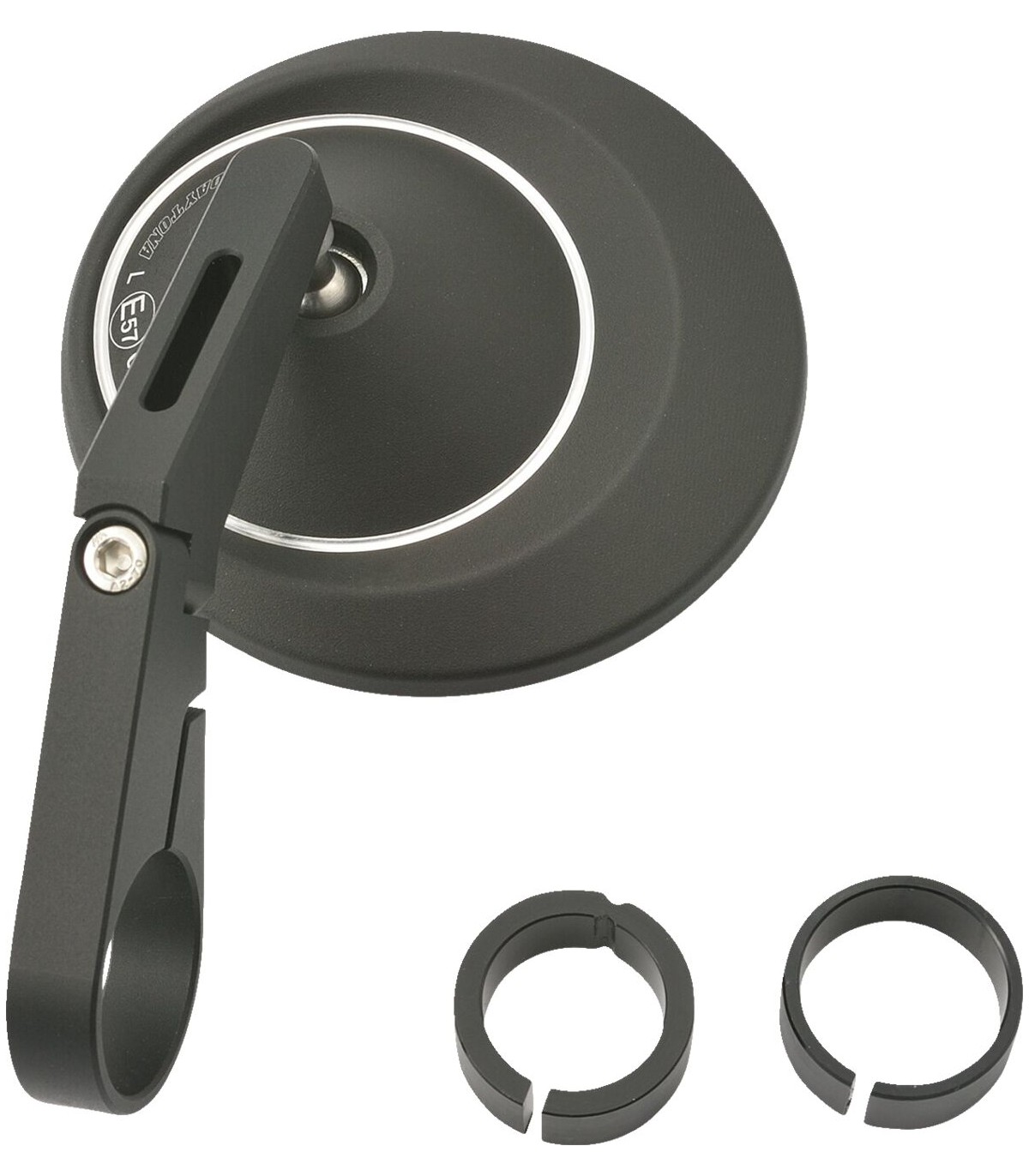Rétroviseur en bout de guidonDiamètre intérieur de la fixation : 30 mm2 entretoises (22,2 mm et 25,4 mm) incluses pour montage directMatériau du bras de rétroviseur : aluminiumLes adaptateurs pour embout de guidon en option peuvent être utilisés.Matériau du support de miroir : aluminium avec surface usinée CNC ou ABS