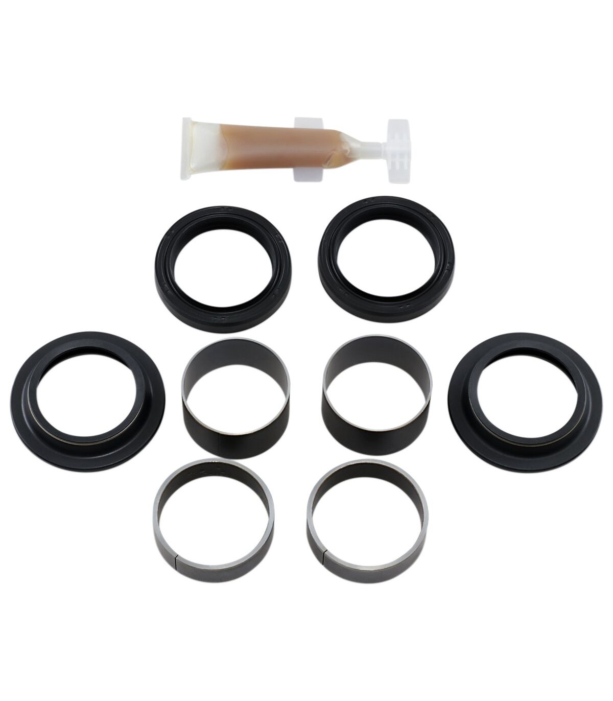 Kit de dépannage de fourcheRenferme tout le nécessaire pour reconditionner un jeu de fourchesChaque kit comporte deux joints spy, deux joints anti-poussière, deux pistons métalliques et deux boisseaux métalliques.Commander un kit par moto