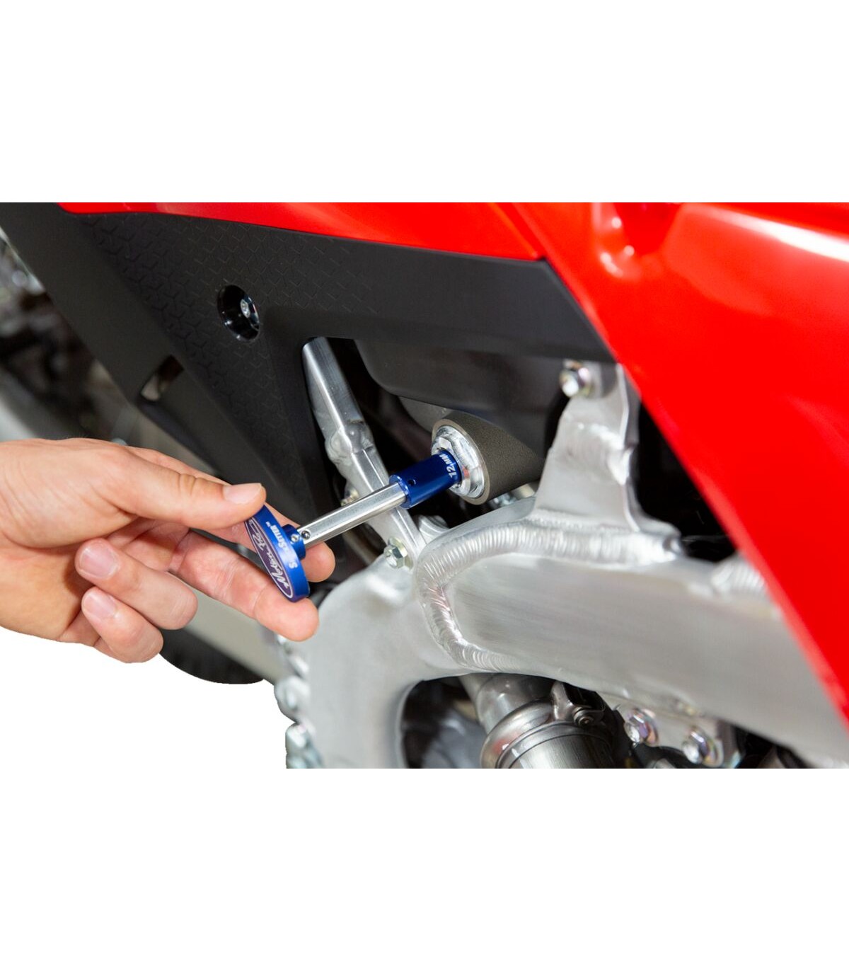 ShockSetterCombines high speed and low speed/rebound adjusters into one compact toolPortable design allows for convenient trackside or trailside adjustmentsMade from durable stainless steel and anodized 6061-T6 aluminumQuickly and easily adjusts rear shock compression and reboundFits common high speed compression adjusters.