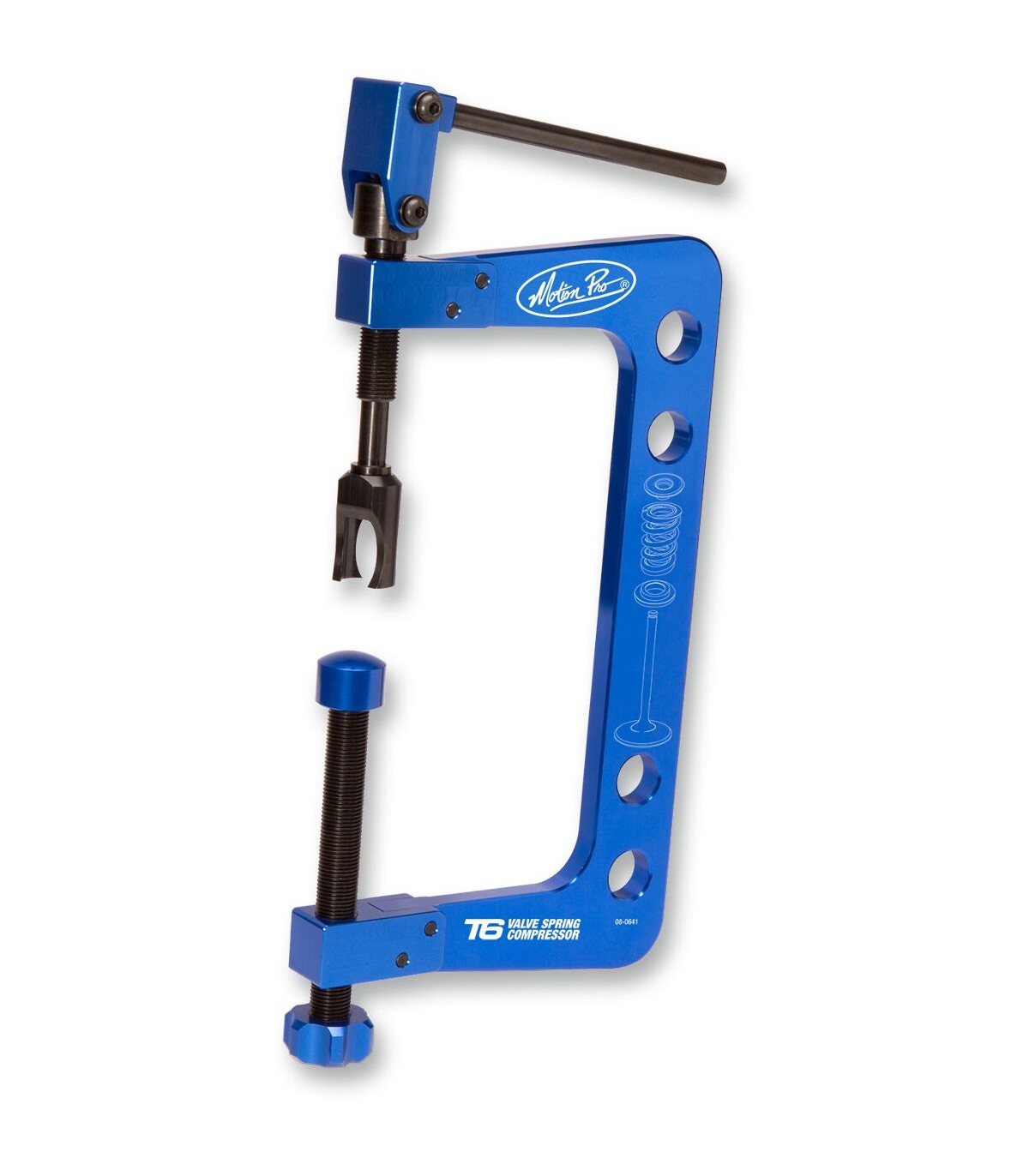 Outils moteur pour compresseur de ressort de soupape T-6Le système d’attache rapide pousse directement contre la coupelle pour éviter de charger latéralemenCompatible avec toutes les culasses de motos, quads, UTV et petit moteursHaut et bas-moteur totalement ajustableEmbout à fourche universel inclusRapide, simple et facile à utiliser
