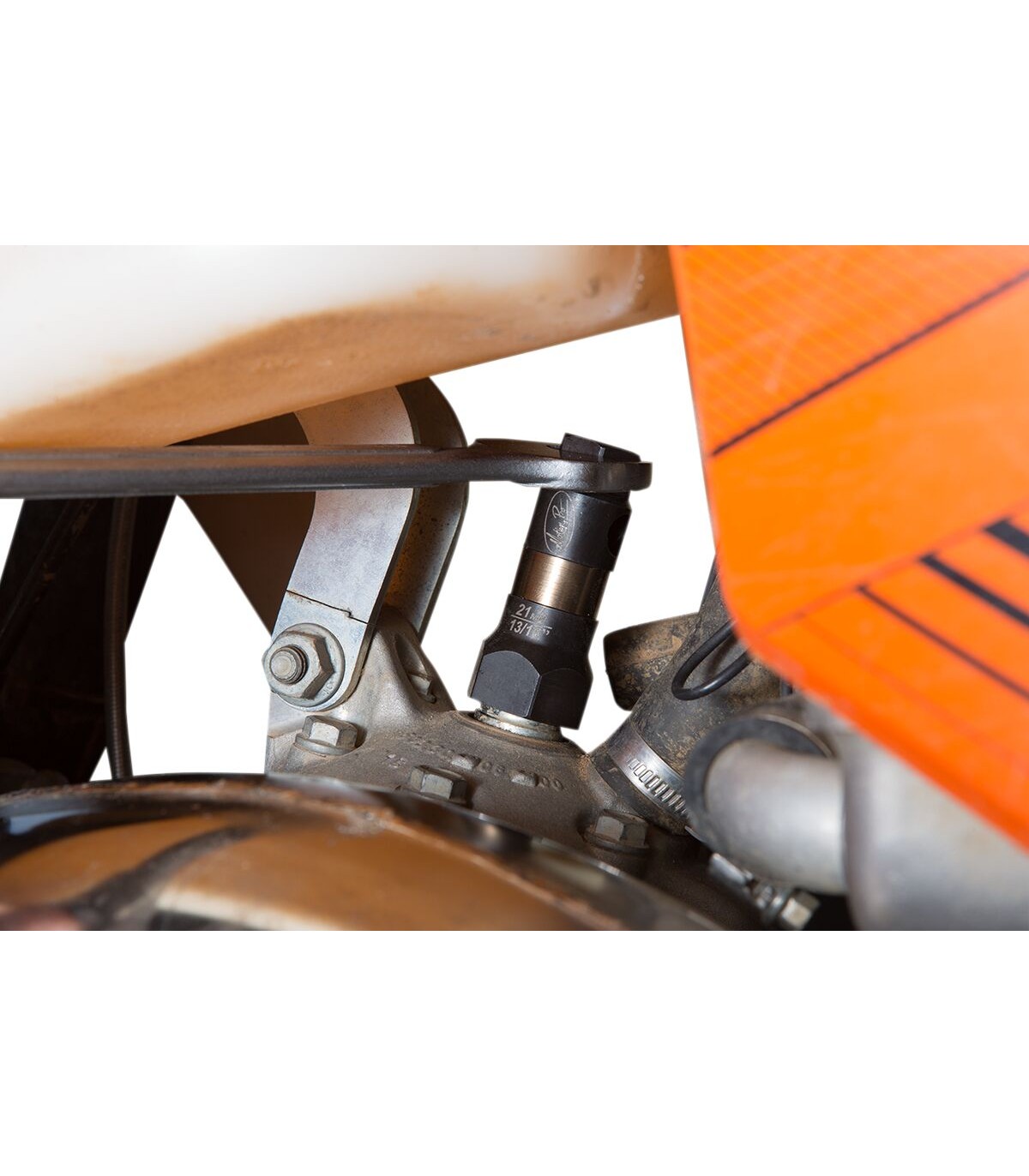 Pro Plug Socket™À combiner avec une clé de 17 mmSystème d'attache à bouton interne innovateurProfil squelette minceLégerCan be used as an axle holding tool on bikes with 17 mm or 24 mm internal hex axles. Through hole allows use of screwdriver or holding rod.