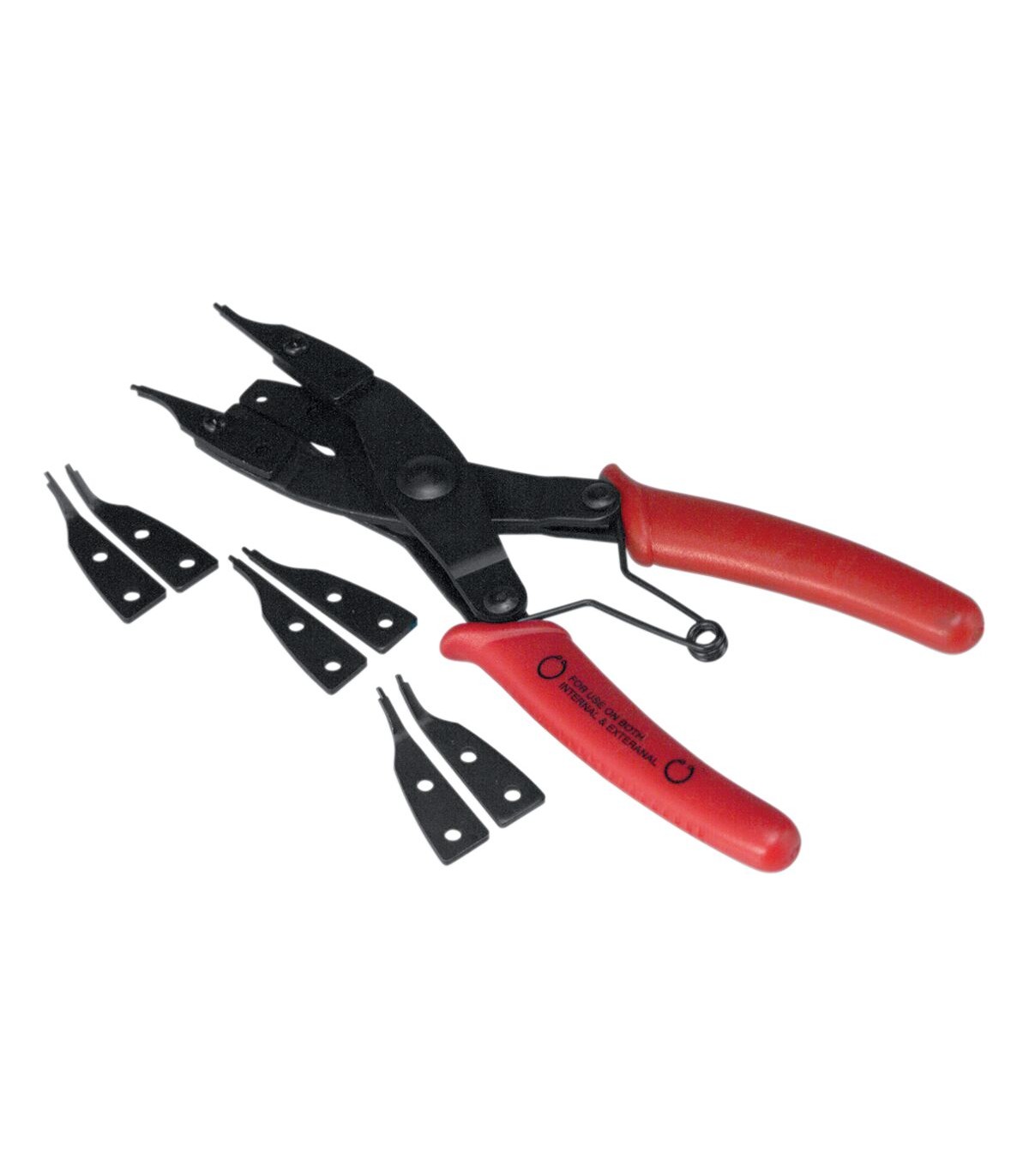 Pinces à clipsDes pinces économiques faciles à utiliser avec clips ou circlips à ouverture externe ou interneComprend trois jeux supplémentaires d'embouts : un embout droit supplémentaire ou deux embouts coudés ou décalés