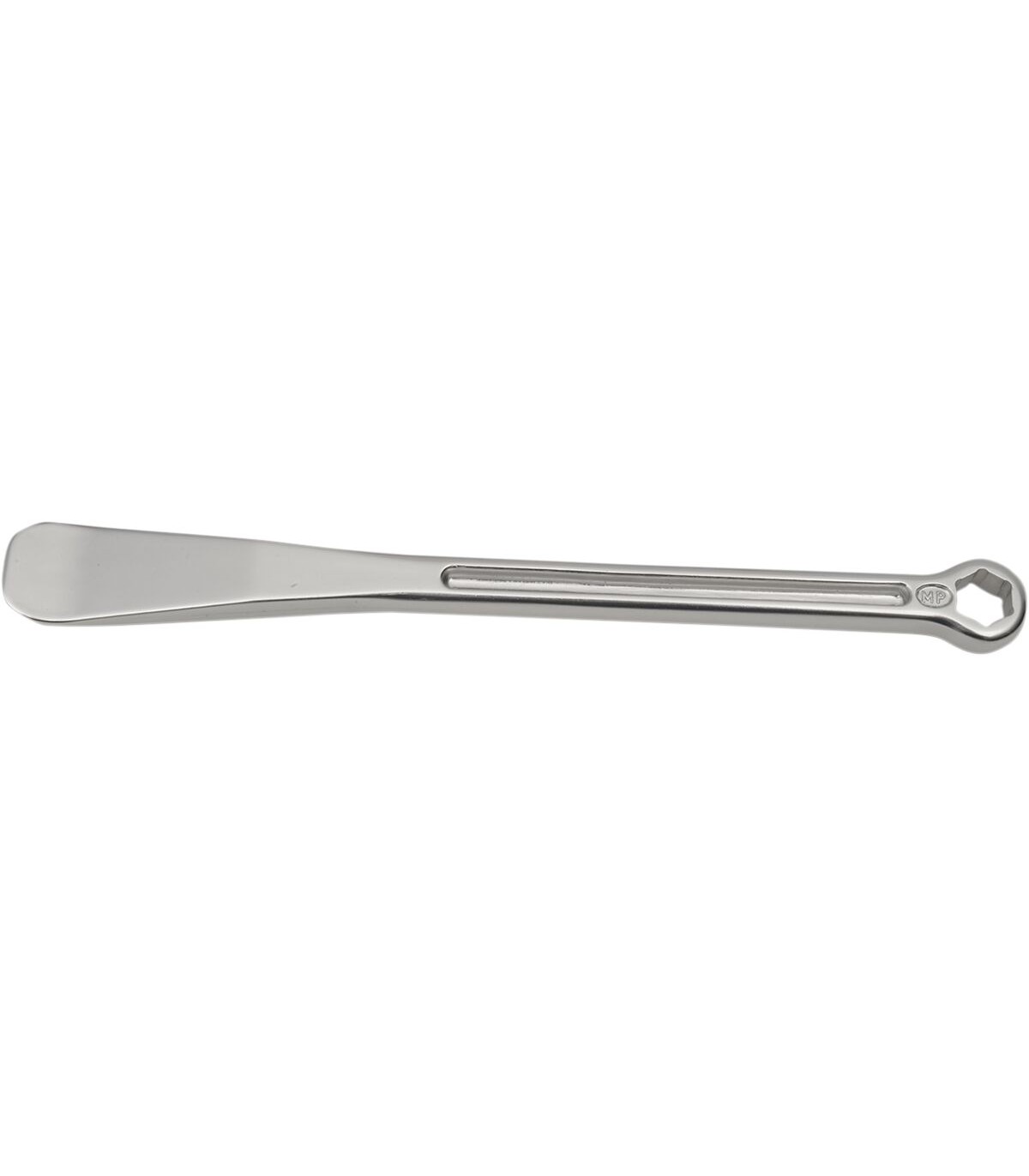 T6 Combo LeverUnique no-pinch lip on tire spoon is designed to avoid tube pinch when installing tiresHex end is rated for a maximum torque of 50 ft/lbPerfectly contoured tire spoon on one endLightweight forged 7075-T6 aluminumWeighs only 3.5 ozEU Hex end is rated for a maximum torque of  67,79 Nm