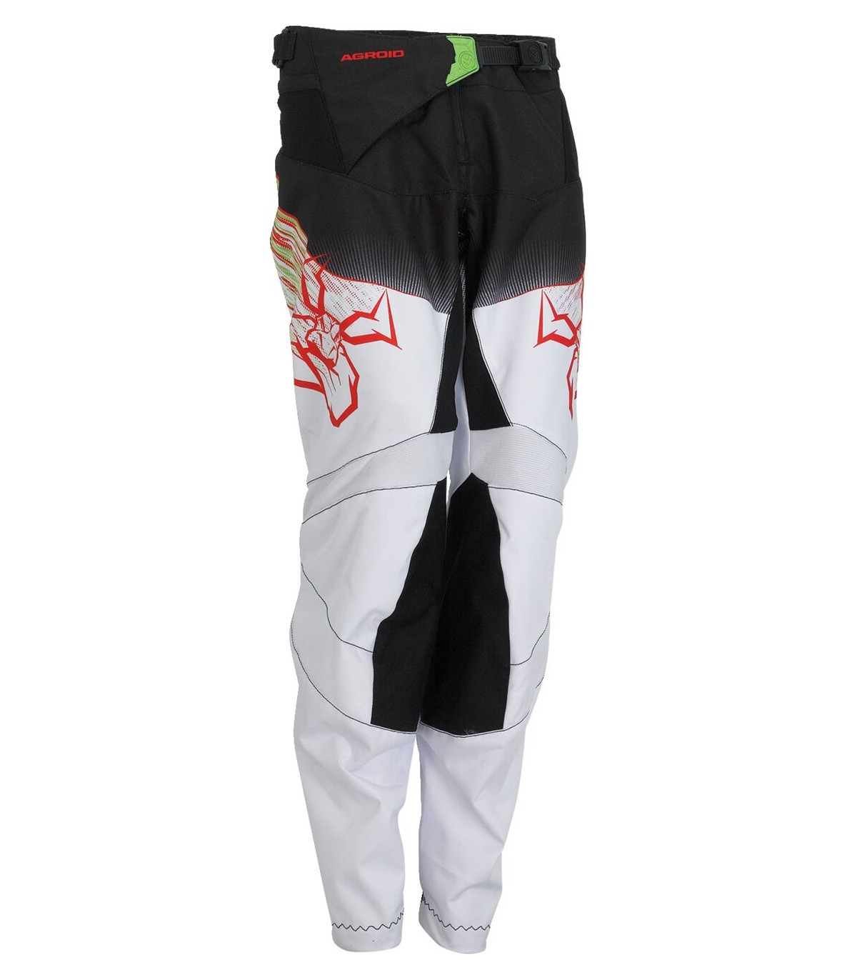 Youth Agroid PantsHigh-denier abrasion-resistant polyesterAthletic-fit stretch panelsPre-curved leg for ergonomic riding positionNon-fading sublimated graphicsYKK® auto-locking zipperThree-point waist adjustment system