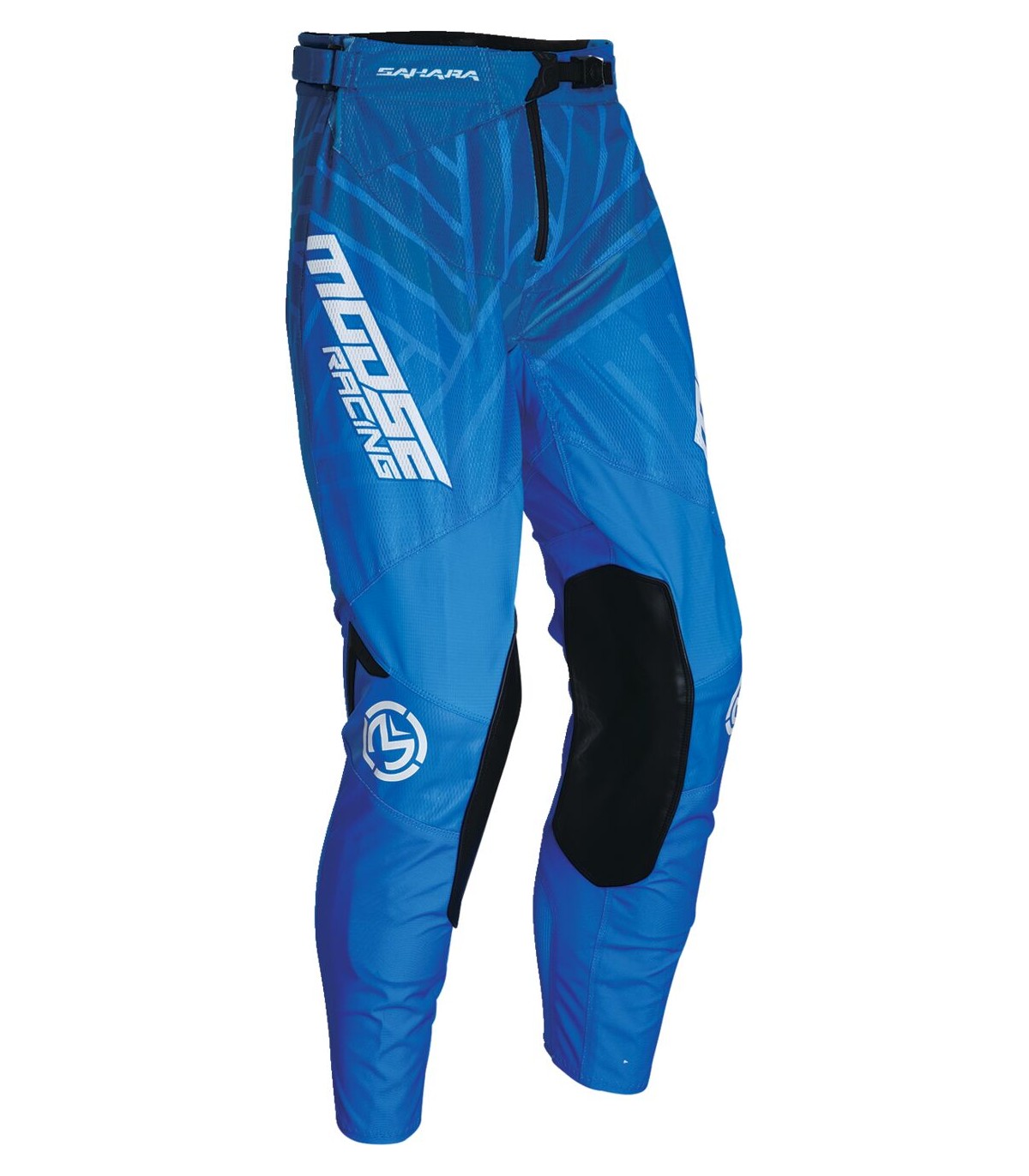 Sahara PantsHigh-density screen printed durable knee panelsPre-curved leg for ergonomic riding positionLightweight ventilated polyester meshThree-point waist adjustment systemFull grain leather inner knee panelsPro-rider testedReinforced high denier rip-stop seat and kneeNon-fading sublimated graphicsYKK® auto locking zipper