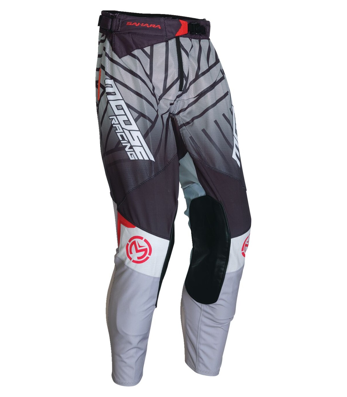 Sahara PantsHigh-density screen printed durable knee panelsPre-curved leg for ergonomic riding positionLightweight ventilated polyester meshThree-point waist adjustment systemFull grain leather inner knee panelsPro-rider testedReinforced high denier rip-stop seat and kneeNon-fading sublimated graphicsYKK® auto locking zipper