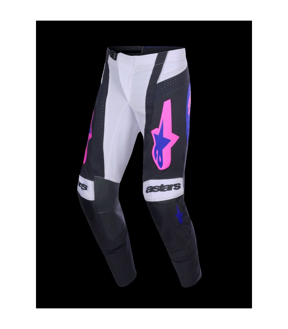 Techstar Knif PantsThe Techstar Knif Pants feature a durable 600D coated polyfabric and an advanced blend of stretch ripstop fabric for enhanced stretchability and durability.Ergonomic cut designed for performance featuring engineered racing cut with optimized multi-panel pattern delivering a second skin feel and premium freedom of movement and mobility.Performance-engineered single-layer construction and linerless design offers enhanced wearability, comfort and lighter weight while also providing effortless on and off, even with knee braces or guards.Durable 4-way stretch on the yoke, thighs, and upper knees.Seat and knees have enhanced durability due to reinforced materials.Innovative revised Babel knee gusset construction for optimal flexibility, comfort and added ventilation.Secure and quick SX2 auto-lock magnetic buckle.Strategically positioned laser perforations for additional airflow and optimum ventilation.Goat leather inner knees for premium feel and durability. Elasticated waist with silicone inner waistline keeps the pants in position.Covered zippered fly for durability.Perfect compatibility with Alpinestars' MX jerseys.