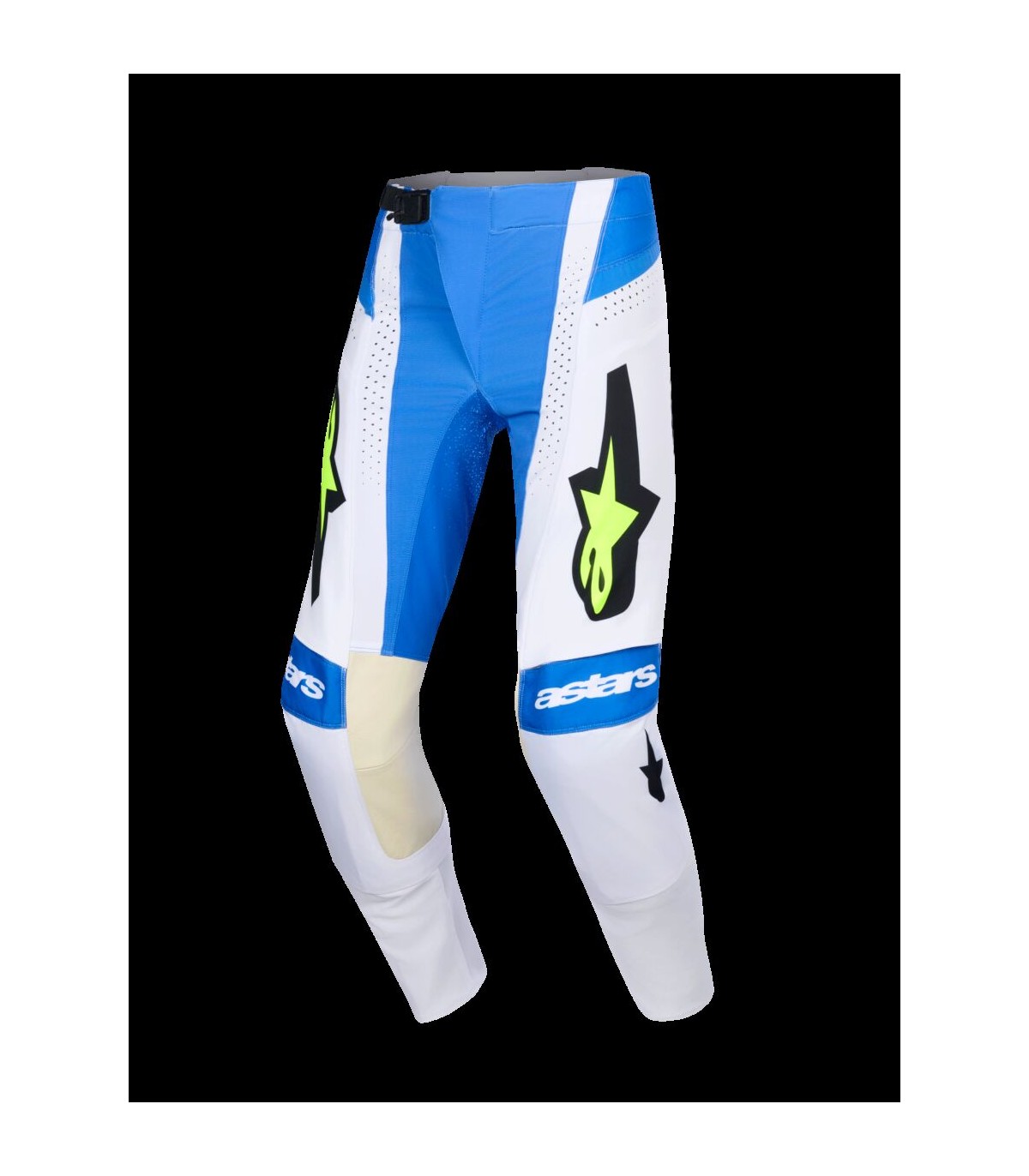 Techstar Knif PantsThe Techstar Knif Pants feature a durable 600D coated polyfabric and an advanced blend of stretch ripstop fabric for enhanced stretchability and durability.Ergonomic cut designed for performance featuring engineered racing cut with optimized multi-panel pattern delivering a second skin feel and premium freedom of movement and mobility.Performance-engineered single-layer construction and linerless design offers enhanced wearability, comfort and lighter weight while also providing effortless on and off, even with knee braces or guards.Durable 4-way stretch on the yoke, thighs, and upper knees.Seat and knees have enhanced durability due to reinforced materials.Innovative revised Babel knee gusset construction for optimal flexibility, comfort and added ventilation.Secure and quick SX2 auto-lock magnetic buckle.Strategically positioned laser perforations for additional airflow and optimum ventilation.Goat leather inner knees for premium feel and durability. Elasticated waist with silicone inner waistline keeps the pants in position.Covered zippered fly for durability.Perfect compatibility with Alpinestars' MX jerseys.
